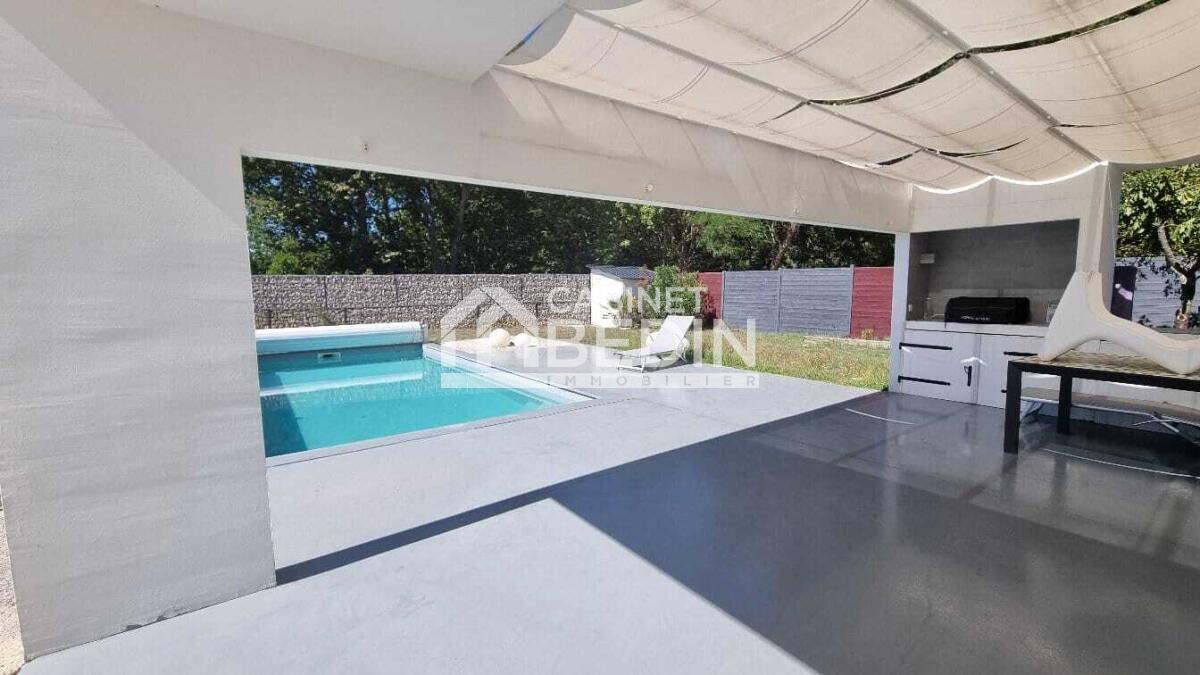 Située dans un quartier prisé, cette belle maison contemporaine de 140 m² combine élégance et confort. Son vaste séjour baigné de lumière accueille un espace salon, salle à manger et une cuisine ouverte entièrement équipée, s’ouvrant sur la terrasse et le jardin paysager. En rez-de-chaussée, une suite parentale avec salle d’eau privative apporte une touche d’intimité. L’étage dessert trois chambres spacieuses, une salle de bains ainsi qu’un palier pouvant servir d’espace bureau ou détente. À l’extérieur, piscine, terrasse ombragée et dépendances complètent cet ensemble harmonieux.