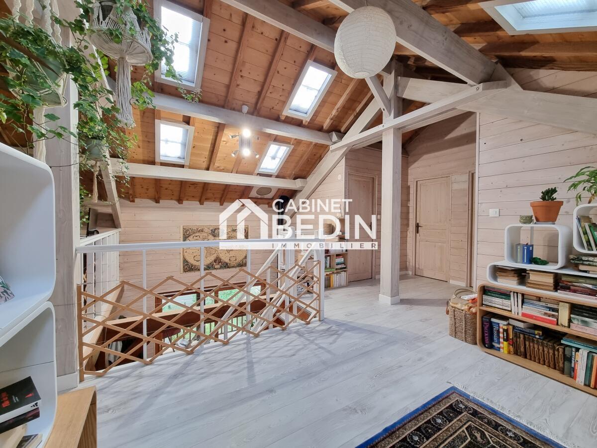 A l'étage, une mezzanine lumineuse desservant trois belles chambres, un dressing, salle d'eau et WC avec la possibilité de créer une quatrième chambre !