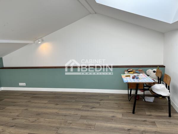 Cette maison ancienne en pierre a été complétement rénovée avec gout. Elle offre 3 chambres dont une suite parentale au rez de chaussée. Une chambre enfant au rez de chaussée également et a l'étage une très grande chambre (17m2 au sol) + rangement 8m2 sous comble + espace jeux sur vide avec filet de protection + mezzanine ; le royaume idéal pour ado ou enfant.