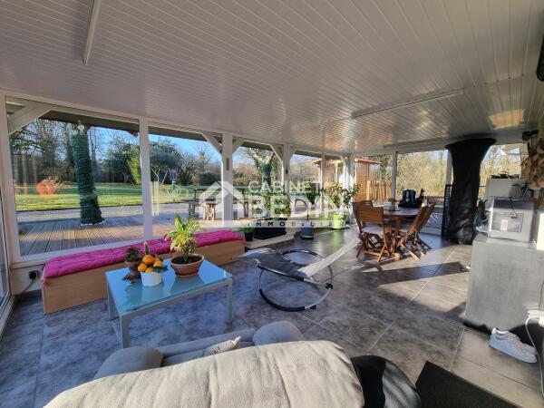 Au coeur d’un cadre verdoyant et au calme, découvrez cette magnifique maison située sur une vaste parcelle. Elle vous offre une belle pièce de vie dotée d’un vaste séjour et d'une cuisine ouverte, 3 chambres et d'une salle d’eau. Sa spacieuse véranda et ses trois terrasses attenantes vous permettront de profiter pleinement du soleil en observant la nature qui s'offre à vous. Elle dispose également d'un garage et d'un carport permettant d'y abriter deux véhicules et plus. Cette maison est parfaite pour une famille à la recherche d'espace et de tranquillité.