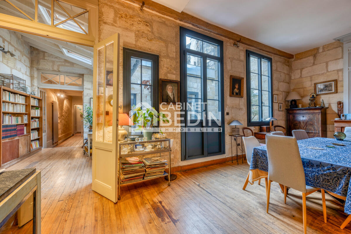 Nous vous proposons de découvrir ce très bel immeuble en pierre, situé dans le quartier historique des Chartrons, à toute proximité de la promenade des quais de Garonne. C'est dans ce lieu, témopin de l'histoire du négoce en vin, que vous pourrez découvrir un lieu de vie parfaitement harmonieux, sur la plus grande surface habitable de l'étage, donnant sur l'arrière de l'immeuble et se déployant autour d'un charmant patio apportant lumière et convivialité.