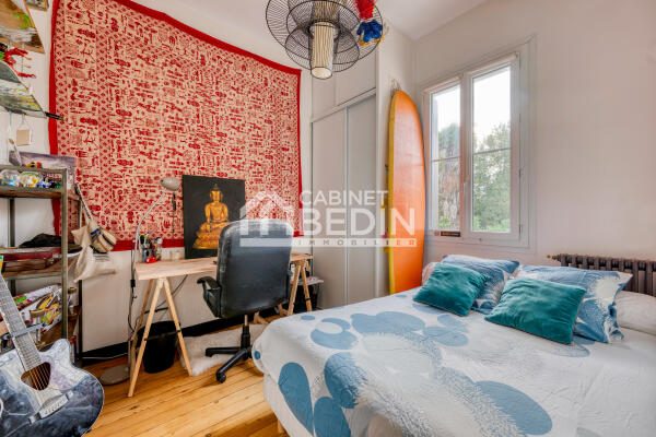 En exclusivité au Cabinet Bedin, Cette annonce immobilière correspond à des personnes en recherche maison Bordeaux. Ce bien immobilier propose une surface de 85 m². dispose de 2 chambres. Dans le détail, cette Maison comprend les pièces ou éléments suivants: chambre de 9.2 m² , suite parentale de 18.1 m² , cuisine sejour salon de 42.0 m² , couloir de 8.0 m² , entree de 7.4 m² , salle d'eau toilettes de 8.5 m² , sous-sol de 27.0 m² , terrasse de m² , toilettes de 1.5 m²