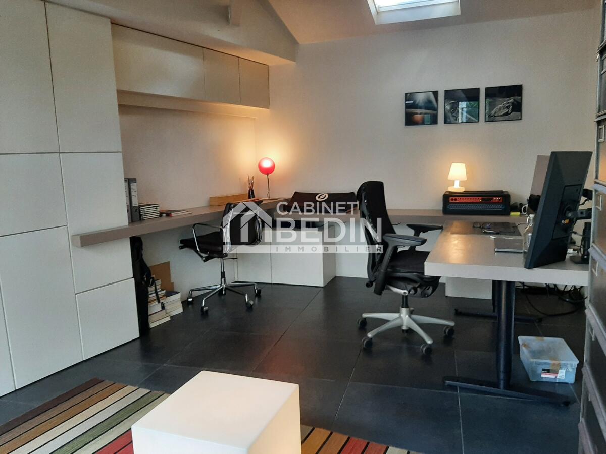 Cette annonce immobilière correspond à des personnes en recherche maison Bordeaux. Ce bien immobilier propose une surface de 130 m². Cette maison construite sur un terrain de 111 m² dispose de 2 chambres. Dans le détail, cette Maison comprend les pièces ou éléments suivants: coin travail de 18.1 m² , cave de 17.8 m² , chambre de 10.0 m² , chambre de 10.0 m² , sous-pentes aménagées de 36.0 m² , dégagement de 4.2 m² , dégagement de 2.7 m² , cuisine de 8.0 m² , entree de 3.0 m² , palier de 14.9 m² , patio de 24.5 m² , pièce repas de 8.4 m² , salle de bain toilettes de 5.2 m² , séjour de 19.3 m² , toilettes de 1.4 m²