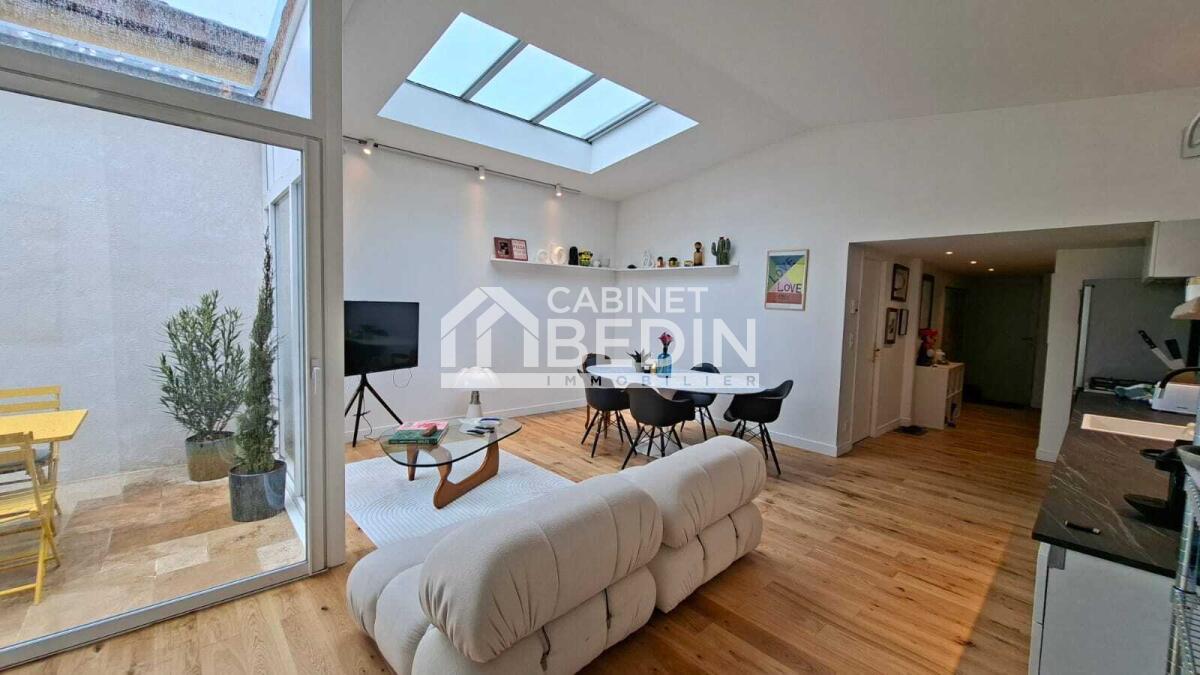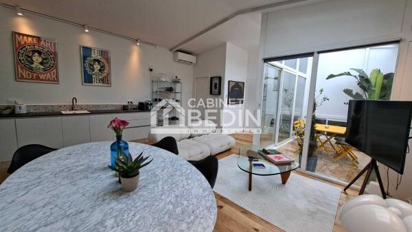 A 5 minutes à pied de l'église et des commerces du quartier prisé de Saint Augustin, cette maison esprit loft récente vous séduira par ses volumes et espaces ouverts donnant sur un patio intérieur. Maison totalement atypique pour les amoureux du design épuré et minimaliste. Lumineux, en demi niveaux, ce loft dispose d'un vaste séjour avec cuisine équipée ouverte, de 3 belles chambres, d'une salle d'eau et d'un garage pour une voiture.