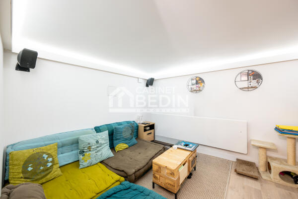 En exclusivité au Cabinet Bedin, Cette annonce immobilière correspond à des personnes en recherche maison Bordeaux. Ce bien immobilier propose une surface de 60 m². dispose de 2 chambres. Dans le détail, cette Maison comprend les pièces ou éléments suivants: buanderie de 5.0 m² , debarras de 2.5 m² , chambre de 8.2 m² , chambre de 9.3 m² , couloir de 1.2 m² , couloir de 4.4 m² , couloir de 3.6 m² , entree de 5.8 m² , douche de 4.2 m² , salle de projection de 10.0 m² , séjour-cuisine us de 21.0 m² , toilettes de 1.1 m²