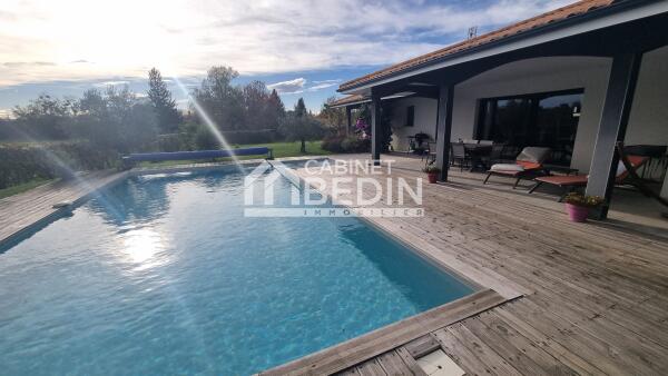 Mandat "Partenaire" du Cabinet Bedin, Cette annonce immobilière correspond à des personnes en recherche maison Bourg. Ce bien immobilier propose une surface de 212,3 m². Cette maison construite sur un terrain de 2345 m² dispose de 4 chambres. Dans le détail, cette Maison comprend les pièces ou éléments suivants: abri de m² , coin travail de 10.5 m² , cabane de m² , debarras de 13.6 m² , chambre de 12.0 m² , chambre de 12.0 m² , chambre de 12.0 m² , suite parentale de 16.4 m² , cuisine sejour salon de 83.0 m² , couloir de 5.7 m² , dressing de 8.3 m² , entree de 14.1 m² , garage de 36.7 m² , local technique de 19.8 m² , piscine de 50.0 m² , douche de 4.5 m² , salle de bain de 12.3 m² , terrasse de 100.0 m² , terrasse couverte de m² , toilettes de 2.1 m² , toilettes de 2.0 m²
