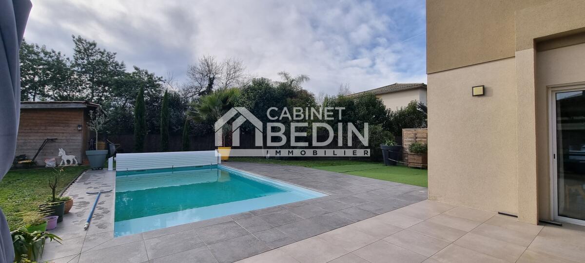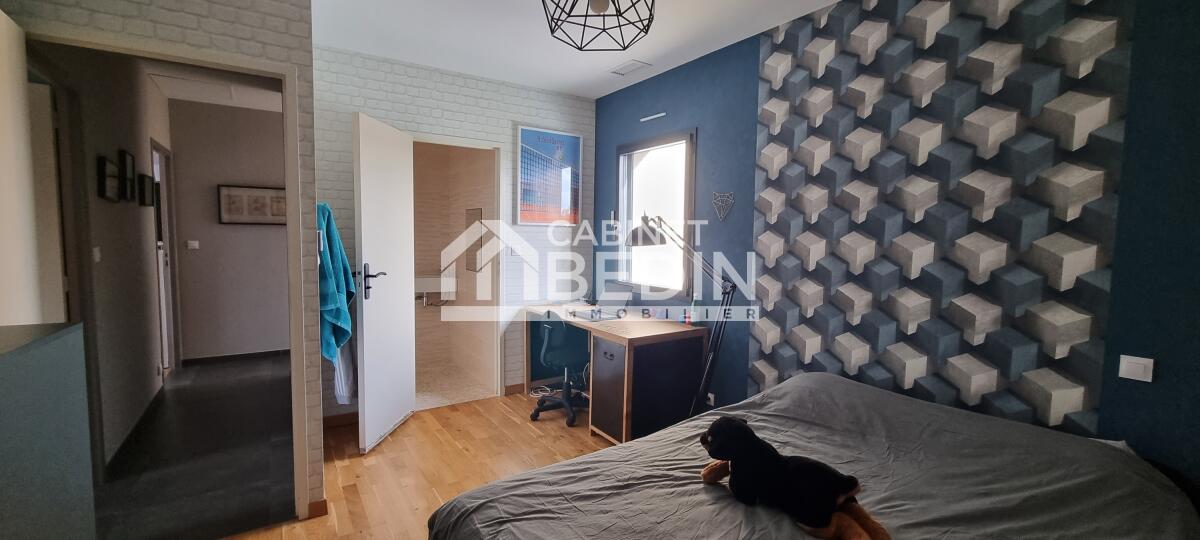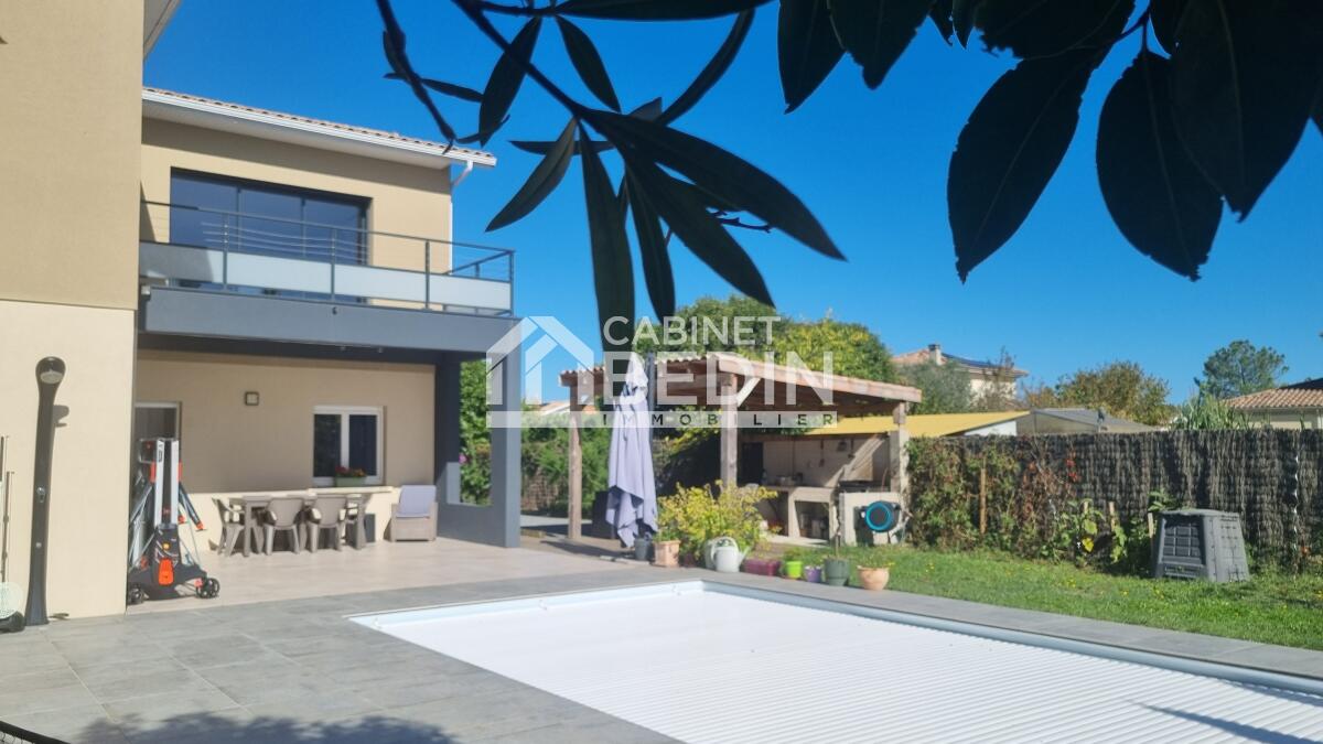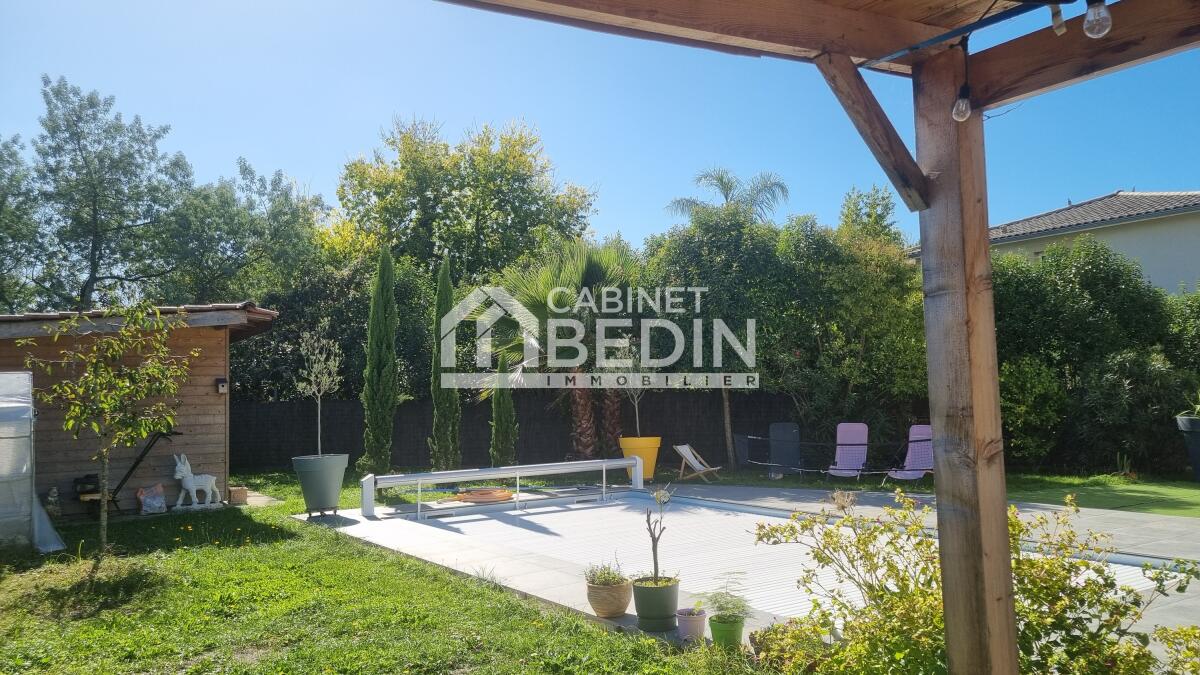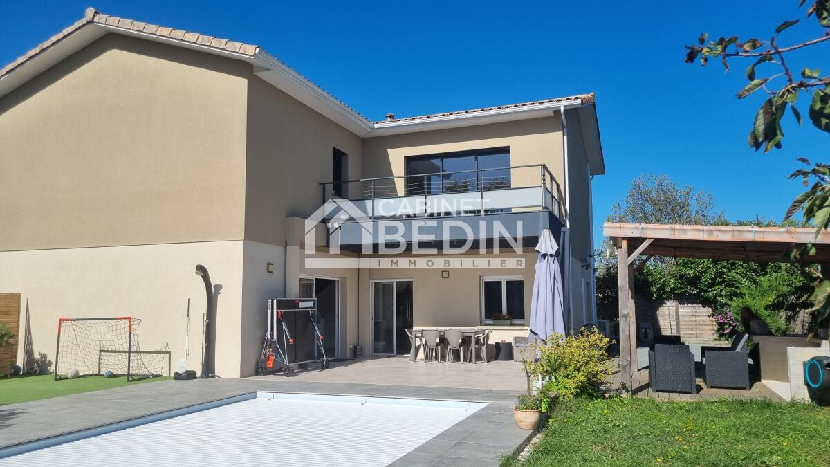 Elevée sur une belle parcelle verdoyante, cette maison familiale offre à la fois de grands espaces de vie pour se réunir et propose à chaque membre de la famille une chambre avec salle d'eau privative. L'espace nuit du rez-de-chaussée est réservé aux parents, vaste suite parentale composée d'une chambre et d'une salle de bains avec douche à l'italienne, baignoire, vasques et WC suspendu. La pièce de vie est largement vitrée sur le jardin et la terrasse, le pool house et la piscine. Le coin cuisine est ouvert, fonctionnel et entièrement équipé. Un escalier majestueux se dresse dans l'entrée et mène au palier de l'étage aménagé en salle de jeux et bibliothèque pour les enfants et d'une salle de sport pour les parents avec accès direct sur le balcon/terrasse offrant ainsi une vue dégagée sur la piscine et le jardin. A l'étage quatre chambres avec chacune sa salle d'eau, l'une d'entre elle est équipé d'un WC supplémentaire. A la convivialité et le charme de ce lieu aux belles prestations s'ajoute un confort technique : maison chauffée par pompe à chaleur basse température, l'ensemble est gainé sur les 2 étages, chauffage au sol en R+1, climatisation réversible, baies vitrées et fenêtres en aluminium double vitrage. L'entrée est équipée d'un vestiaire penderie et étagères, d'un WC indépendant et permet d'accéder au garage où se trouvent chaufferie et buanderie. Particulièrement bien pensée et aménagée à l'intérieur, l'extérieur est tout aussi agréable avec des espaces où chacun peut se détendre, entre amis ou en famille autour du boulodrome ou encore de la piscine et du pool-house, ou tranquillement sur la terrasse entourée d'espaces verts. La gestion des voitures est simple, garage, 2 places de stationnement sur le côté et un grand jardin d'accueil précède cette maison rénovée en 2018 sans aucune mitoyenneté ni vis à vis. A cela s'ajoute la proximité du tram C arrêt la vache, et pour les joggers la voie verte est accessible en quelques foulées. Très du Bouscat, des commerces et des écoles, l'accès au boulevards est rapide. Appelez-nous au 0557225500 pour visiter ce bien rare qui vous offrira un confort et une qualité de vie, au calme.