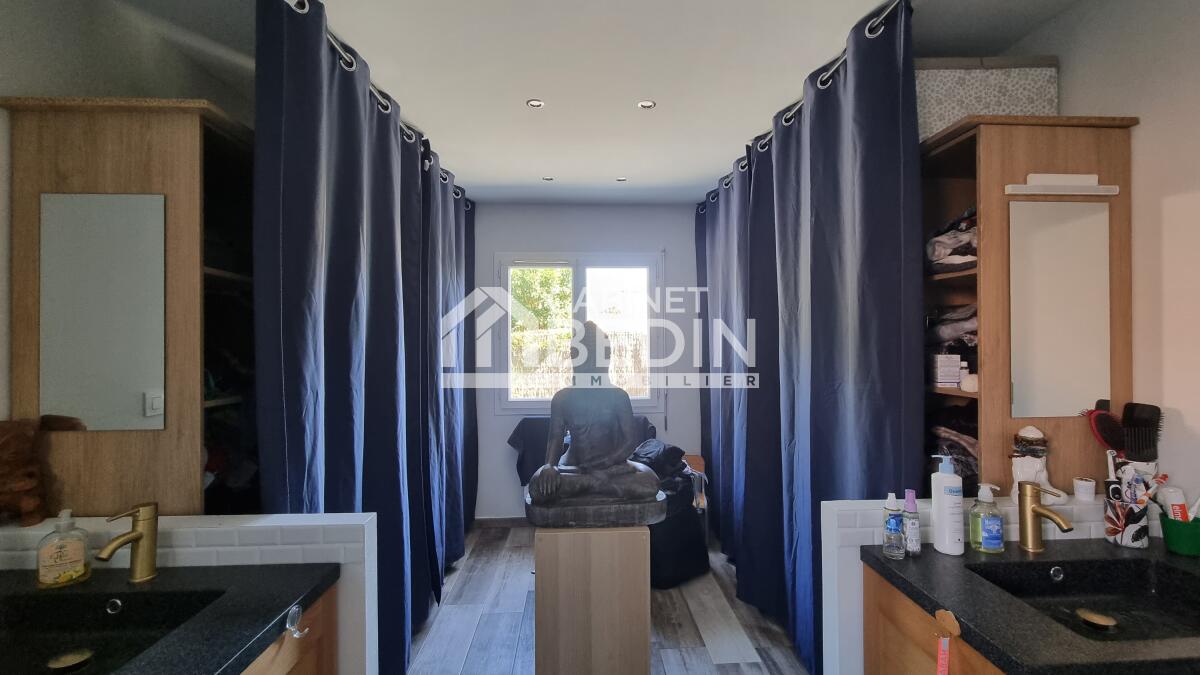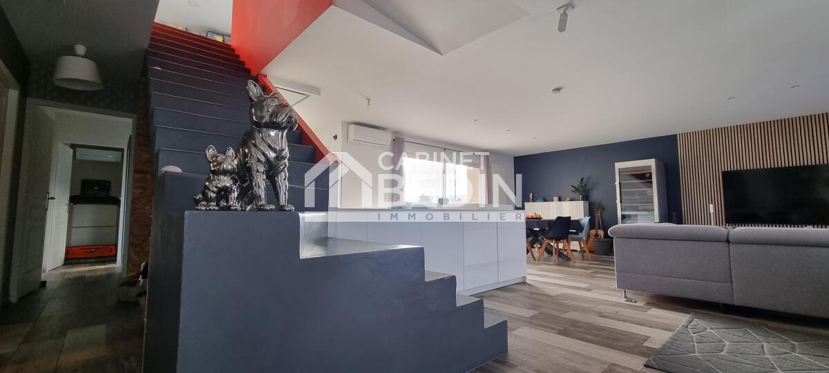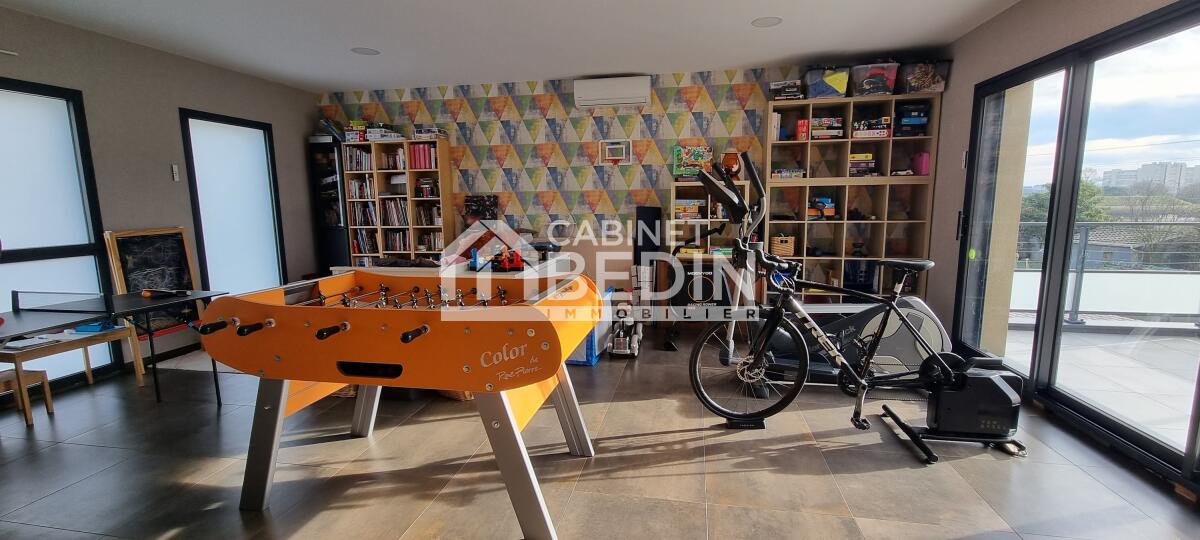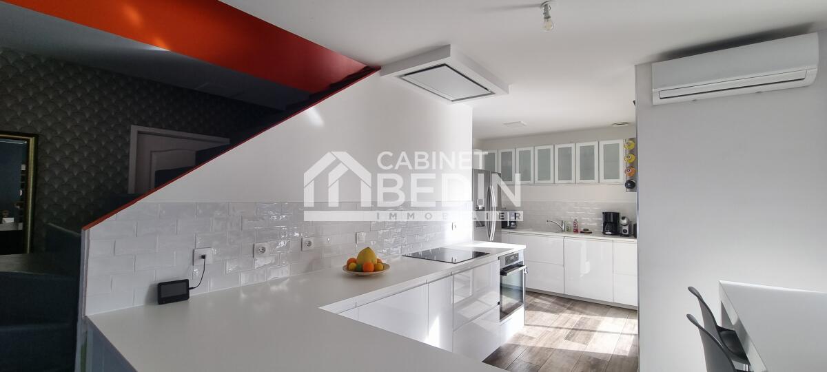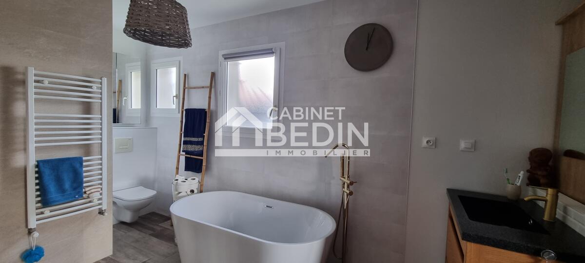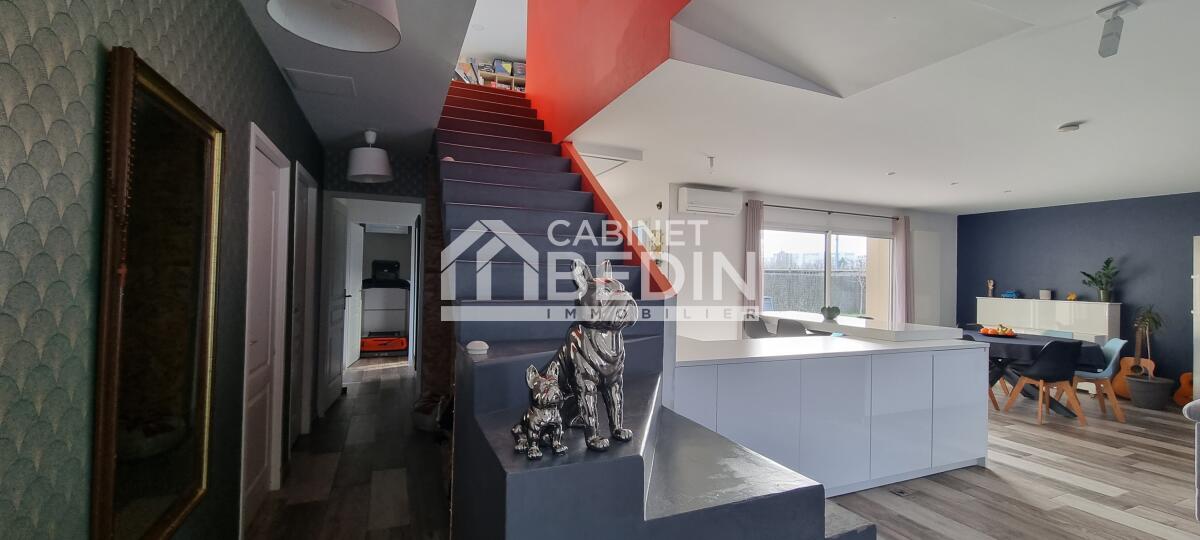 Elevée sur une belle parcelle verdoyante, cette maison familiale offre à la fois de grands espaces de vie pour se réunir et propose à chaque membre de la famille une chambre avec salle d'eau privative. L'espace nuit du rez-de-chaussée est réservé aux parents, vaste suite parentale composée d'une chambre et d'une salle de bains avec douche à l'italienne, baignoire, vasques et WC suspendu. La pièce de vie est largement vitrée sur le jardin et la terrasse, le pool house et la piscine. Le coin cuisine est ouvert, fonctionnel et entièrement équipé. Un escalier majestueux se dresse dans l'entrée et mène au palier de l'étage aménagé en salle de jeux et bibliothèque pour les enfants et d'une salle de sport pour les parents avec accès direct sur le balcon/terrasse offrant ainsi une vue dégagée sur la piscine et le jardin. A l'étage quatre chambres avec chacune sa salle d'eau, l'une d'entre elle est équipé d'un WC supplémentaire. A la convivialité et le charme de ce lieu aux belles prestations s'ajoute un confort technique : maison chauffée par pompe à chaleur basse température, l'ensemble est gainé sur les 2 étages, chauffage au sol en R+1, climatisation réversible, baies vitrées et fenêtres en aluminium double vitrage. L'entrée est équipée d'un vestiaire penderie et étagères, d'un WC indépendant et permet d'accéder au garage où se trouvent chaufferie et buanderie. Particulièrement bien pensée et aménagée à l'intérieur, l'extérieur est tout aussi agréable avec des espaces où chacun peut se détendre, entre amis ou en famille autour du boulodrome ou encore de la piscine et du pool-house, ou tranquillement sur la terrasse entourée d'espaces verts. La gestion des voitures est simple, garage, 2 places de stationnement sur le côté et un grand jardin d'accueil précède cette maison rénovée en 2018 sans aucune mitoyenneté ni vis à vis. A cela s'ajoute la proximité du tram C arrêt la vache, et pour les joggers la voie verte est accessible en quelques foulées. Très du Bouscat, des commerces et des écoles, l'accès au boulevards est rapide. Appelez-nous au 0557225500 pour visiter ce bien rare qui vous offrira un confort et une qualité de vie, au calme.