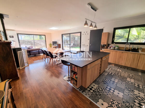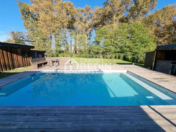 Cette annonce immobilière correspond à des personnes en recherche maison Cabanac Et Villagrains. Ce bien immobilier propose une surface de 126 m². Cette maison construite sur un terrain de 1350 m² dispose de 4 chambres. Dans le détail, cette Maison comprend les pièces ou éléments suivants: abri de 10.0 m² , abri jardin de 12.0 m² , debarras de 4.8 m² , chambre de 9.0 m² , chambre de 10.0 m² , chambre de 10.0 m² , suite parentale de 21.5 m² , cuisine d'été de 14.5 m² , cuisine sejour salon de 50.0 m² , couloir de 8.0 m² , garage de 15.0 m² , local piscine de 4.5 m² , salle de bain de 5.8 m² , toilettes de 1.7 m²