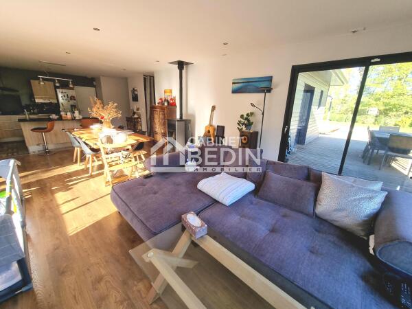Maison récente 4 chambres à Cabanac-et-Villagrains avec piscine et jardin paysager, au calme d’un hameau forestier.