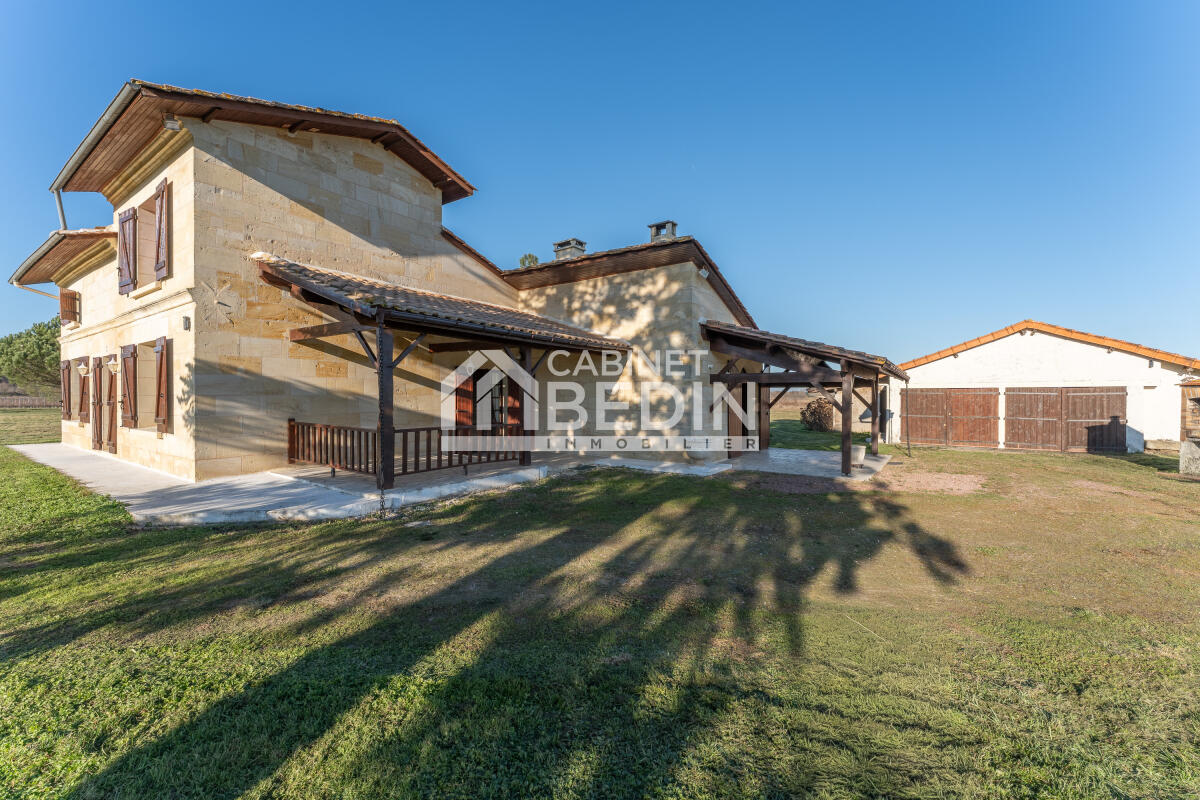 Maison en pierre à vendre à Cadarsac, à 10 min de Libourne et 30 min de Bordeaux. Ancien domaine viticole sur terrain d’environ 15 000 m², cadre verdoyant, charme de l’ancien (cheminées, poutres). Fort potentiel, dépendances, garages, possibilité chevaux, verger en option. Travaux à prévoir.