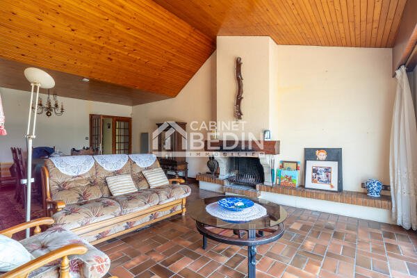 Elle offre un séjour lumineux avec cheminée et belle hauteur sous plafond, ouvert sur une terrasse exposée ouest, une cuisine indépendante, une salle à manger, 4 chambres et 2 salles de bains.
