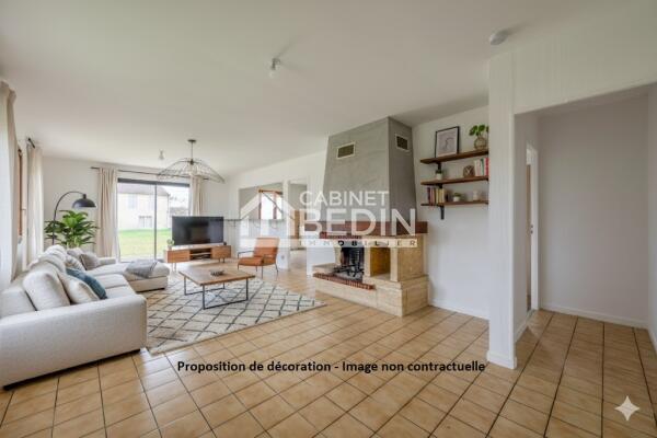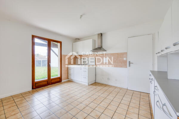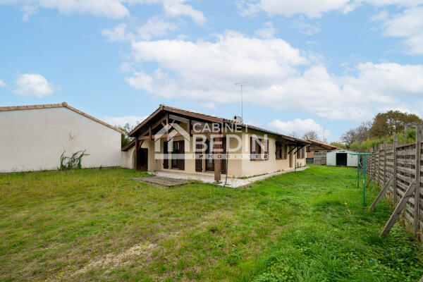 Maison landaise à Castelnau de Médoc avec grand garage et pièce de vie lumineuse, proche commerces et écoles.