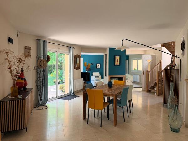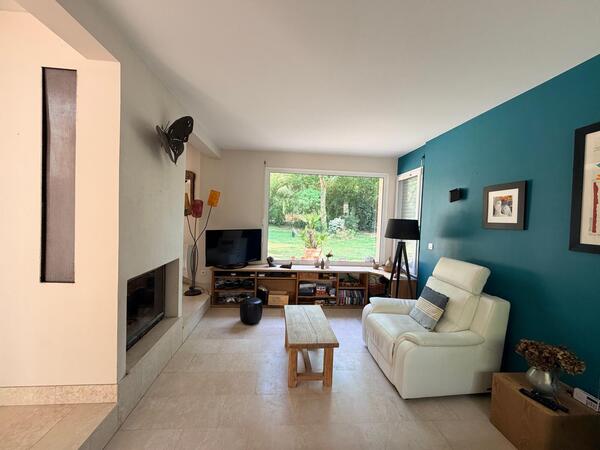 Nichée dans un environnement privilégié, cette maison contemporaine vous séduira par son calme, son magnifique terrain plat et arboré de plus de 3000 m².