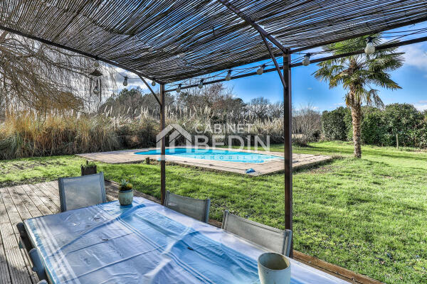 En exclusivité au Cabinet Bedin, Cette annonce immobilière correspond à des personnes en recherche maison Coimeres. Ce bien immobilier propose une surface de 131,5 m². Cette maison construite sur un terrain de 2149 m² dispose de 3 chambres. Dans le détail, cette Maison comprend les pièces ou éléments suivants: coin travail de 8.9 m² , carport de 16.0 m² , debarras de 5.7 m² , chambre de 12.2 m² , chambre de 12.2 m² , suite parentale de 15.2 m² , dégagement de 7.6 m² , cuisine sejour salon de 61.0 m² , salle de bain de 6.3 m² , terrasse de 80.0 m² , toilettes de 2.4 m²