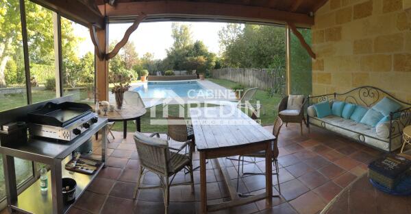 Découvrez cette maison en pierre du début du XXe siècle à Cubnezais. Elle offre 3 grandes chambres, une piscine, un double garage, ainsi qu'un espace véranda avec cuisine d'été. Un cadre idéal pour un achat immobilier à Cubnezais alliant charme et confort.