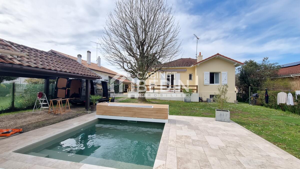 DAX, dans un quartier calme et recherché proche de toutes les commodités coup de coeur assuré pour cette maison de plain-pied entièrement rénovée. Elle se compose d'une entrée, d'un séjour salle à manger, d'une cuisine aménagée et équipée donnant sur une terrasse de 25m2 environ, une salle d'eau, deux chambres avec placards. Un sous-sol de 36m2 environ avec la possibilité de créer une troisième chambre. Une piscine, une terrasse couverte, un abris et un garage viennent compléter ce bien. Bien RARE! A visiter de toute URGENCE!