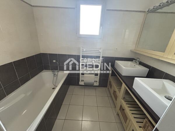 Cette annonce immobilière correspond à des personnes en recherche location maison Gujan Mestras.Ce bien immobilier de type maison d'une surface habitable de 100 m² dispose de 3 chambres. Dans le détail, il comprend les pièces ou éléments suivants: chambre de 10.9 m² , chambre de 11.1 m² , chambre de 12.2 m² , cuisine americaine de 13.8 m² , entree de 5.0 m² , salle de bain de 5.5 m² , salon de 36.5 m² , toilettes de 1.5 m²