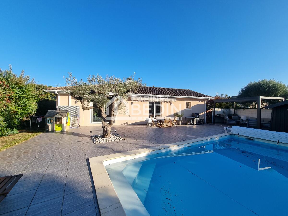 Nouveau à la vente en exclusivité ! Dans un quartier résidentiel et proche de toutes les commodités, venez découvrir cette maison contemporaine lumineuse de plain pied. Elle offre une spacieuse pièce de vie avec poêle à bois et climatisation réversible, cuisine US équipée et cellier. Le tout avec un accès direct sur le jardin clos et paysager de plus de 800m² avec piscine 8x4 chauffée et terrasse carrelée avec pergola. Côté nuit, vous trouverez quatre chambres dont trois avec placard, une salle de bains et une salle d'eau rénovées. Garage attenant à la maison, stationnement extérieur et chalet en bois complètent le bien. Contactez nous pour une visite privée !