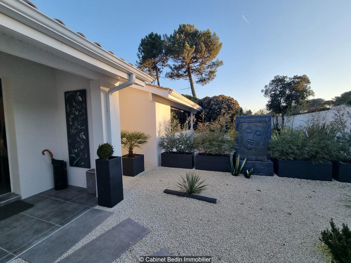 Nouveauté au Cabinet Bedin Immobilier : située au cœur de Gujan-Mestras, cette maison contemporaine de plain-pied entièrement rénovée est implantée sur une parcelle paysagée de plus de 800 m².