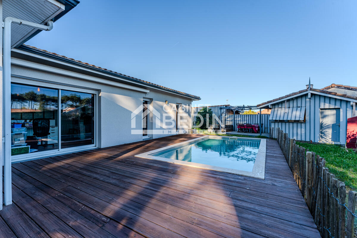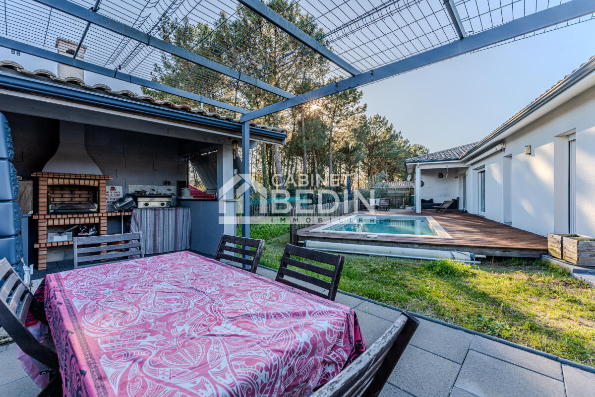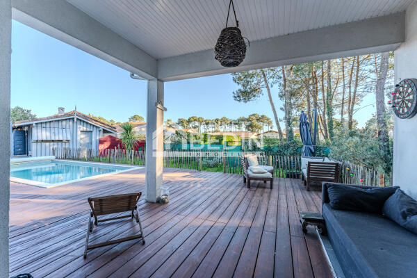Cette annonce immobilière correspond à des personnes en recherche maison Gujan Mestras. Ce bien immobilier propose une surface de 136,3 m². Cette maison construite sur un terrain de 804 m² dispose de 4 chambres. Dans le détail, cette Maison comprend les pièces ou éléments suivants: abri de 20.0 m² , coin travail de 7.0 m² , coin travail de 9.2 m² , carport de 30.0 m² , debarras de 7.1 m² , chambre de 10.4 m² , chambre de 10.4 m² , chambre de 11.5 m² , chambre de 9.7 m² , cuisine de 9.7 m² , couloir de 3.8 m² , entree de 4.3 m² , piscine de 18.0 m² , local piscine de 15.0 m² , douche de 5.7 m² , douche de 2.9 m² , salon de 42.7 m² , terrasse de 80.0 m² , terrasse couverte de 9.5 m² , toilettes de 1.8 m²