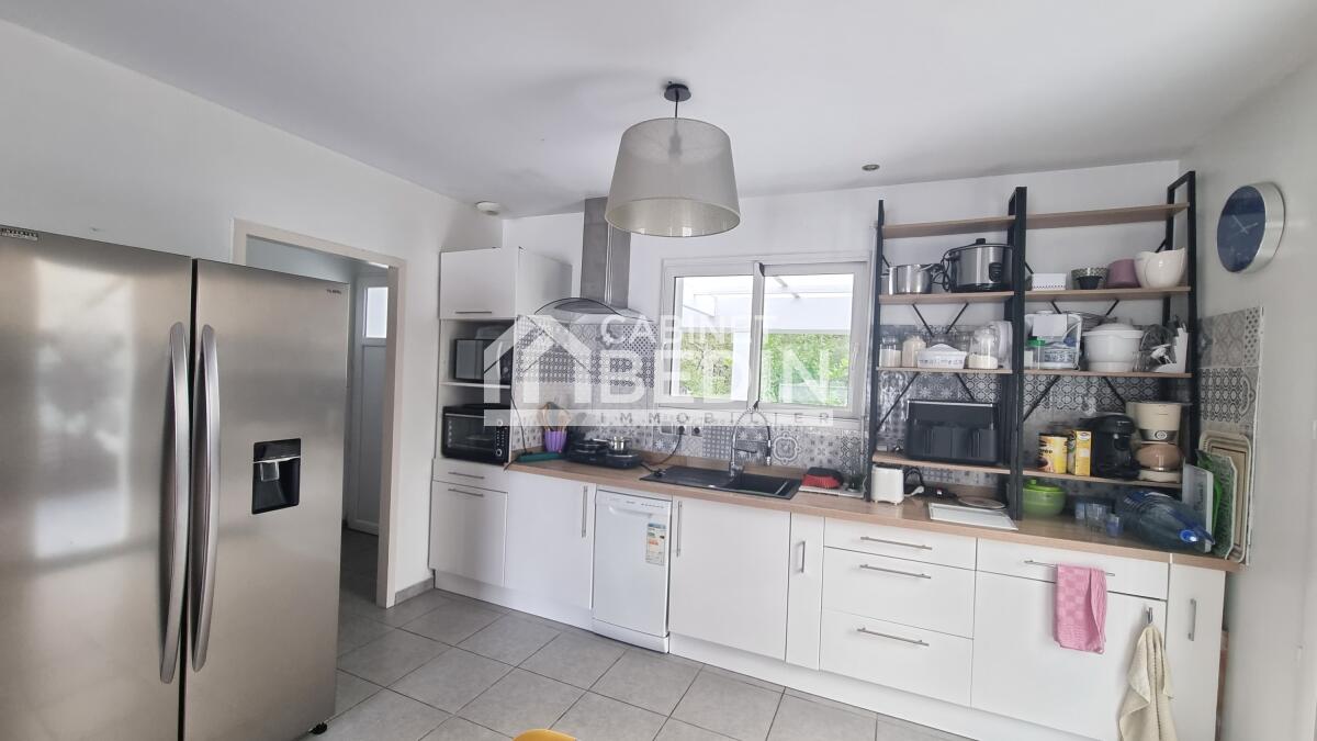 A dix minutes de Dax, posez vos valises dans cette maison contemporaine de plain-pied de 5 pièces, située au calme en lisière de forêt. Elle se compose d'une vaste pièce de vie de plus de 40m2 avec cuisine américaine, un cellier, trois chambres, un bureau, une salle d'eau et WC séparés. Trois terrasses viennent compléter ce bien avec cuisine d'été (terrasse avant, terrasse couverte de 37m2 et terrasse fermée de 36m2 ). Vous tomberez sous le charme de son environnement et de sa vue donnant sur la forêt. Aucun travaux à prévoir. A visiter de toute urgence.