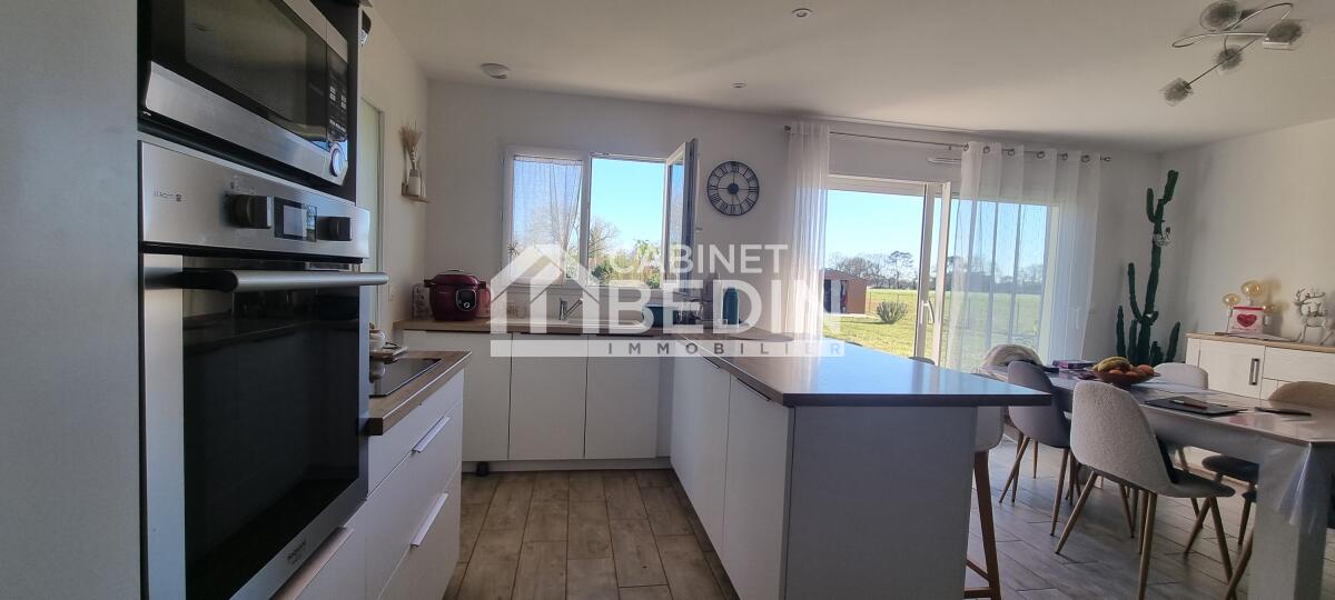 En exclusivité au Cabinet Bedin, Cette annonce immobilière correspond à des personnes en recherche maison Hinx. Ce bien immobilier propose une surface de 105 m². Cette maison construite sur un terrain de 1500 m² dispose de 3 chambres. Dans le détail, cette Maison comprend les pièces ou éléments suivants: debarras de 4.4 m² , chambre de 12.1 m² , chambre de 11.3 m² , chambre de 10.0 m² , cuisine de 9.1 m² , couloir de 2.9 m² , entree de 1.3 m² , garage de 11.6 m² , salle de bain de 7.0 m² , salon de 35.0 m² , toilettes de 1.8 m²