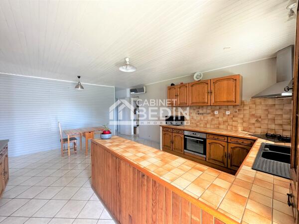 Cette annonce immobilière correspond à des personnes en recherche maison Hinx. Ce bien immobilier propose une surface de 140 m². Cette maison construite sur un terrain de 1500 m² dispose de 3 chambres. Dans le détail, cette Maison comprend les pièces ou éléments suivants: coin travail de 16.6 m² , debarras de 8.0 m² , chambre de 12.2 m² , chambre de 12.8 m² , chambre de 14.3 m² , dégagement de 3.5 m² , cuisine de 26.6 m² , garage de 47.0 m² , salle de bain de 10.0 m² , salon de 34.3 m² , toilettes de 1.7 m²