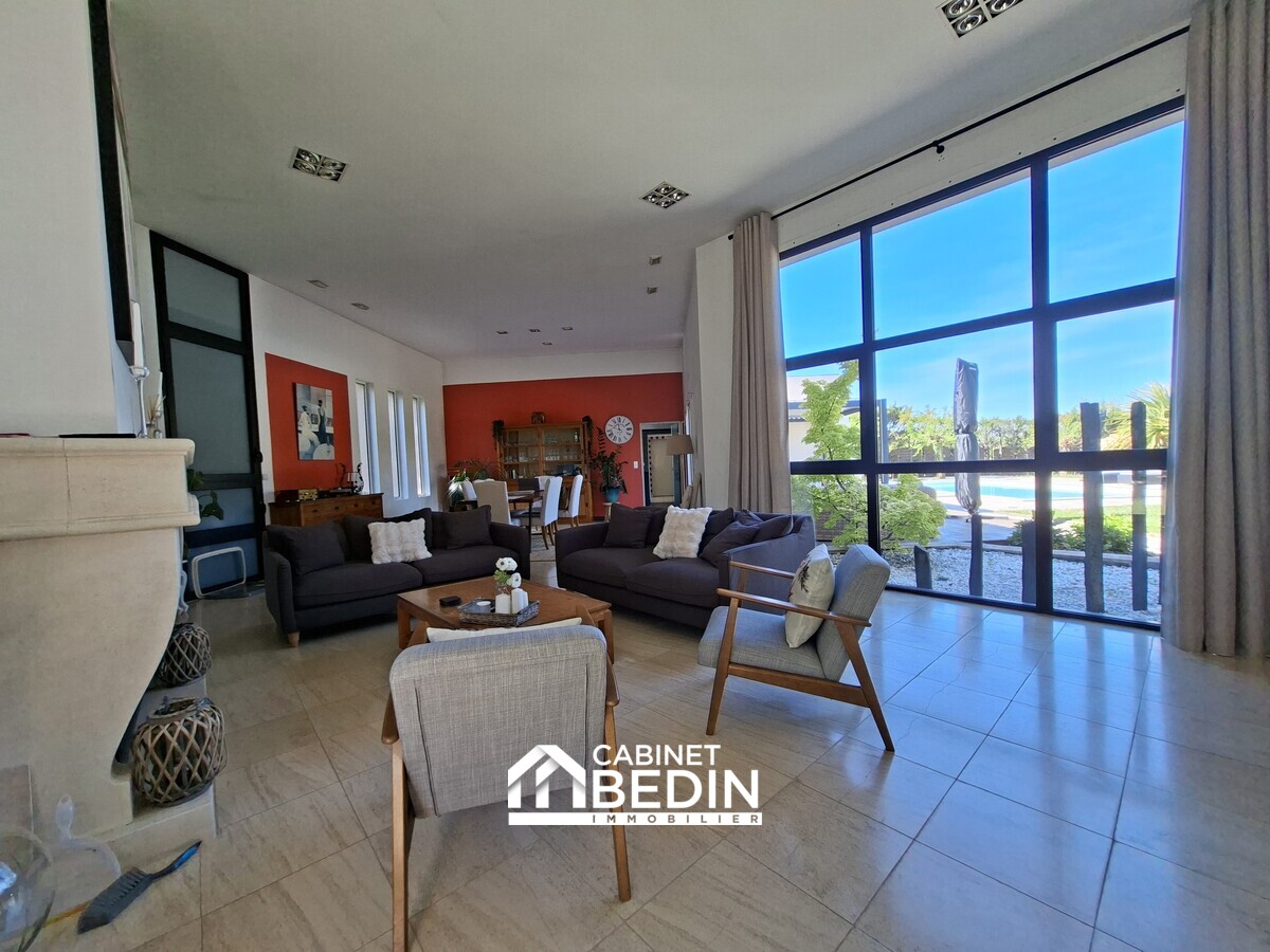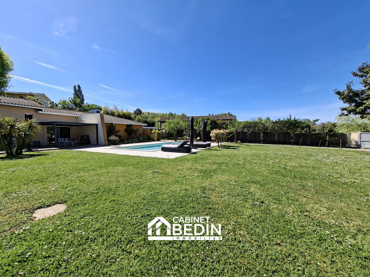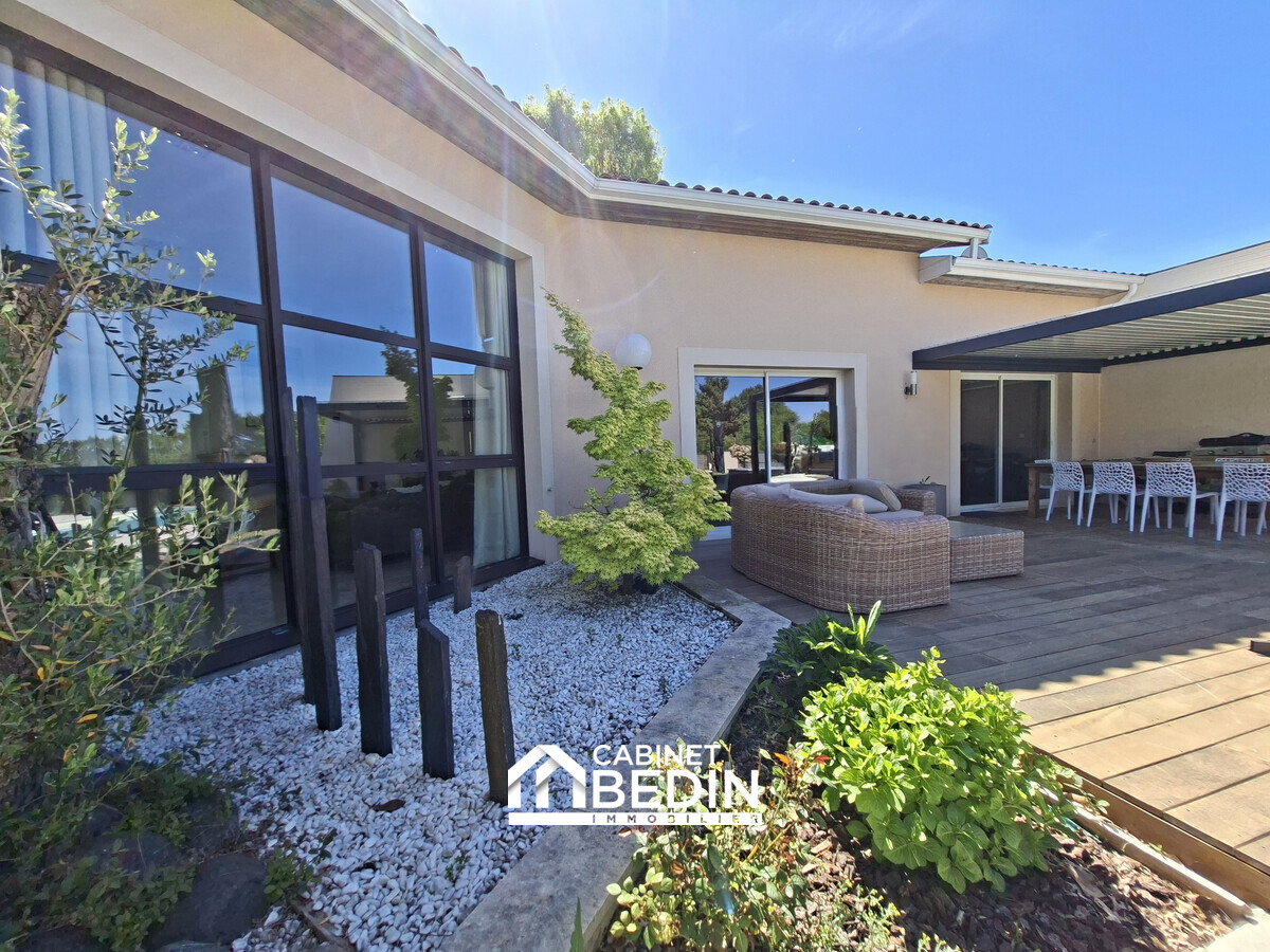 Située en plein centre de La Brède, dans un environnement résidentiel recherché, cette villa d’architecte de 260 m² offre de beaux volumes et des prestations de qualité