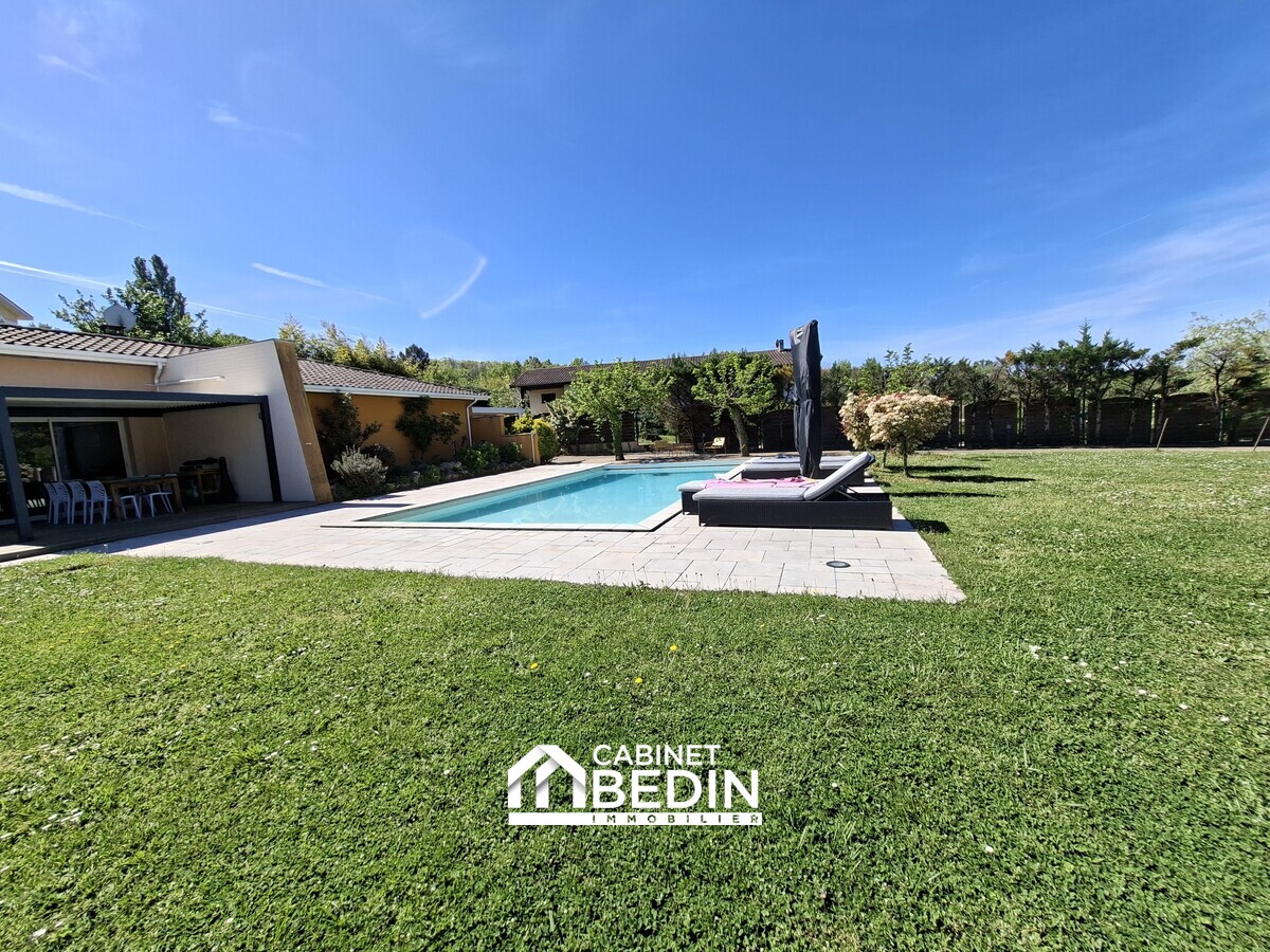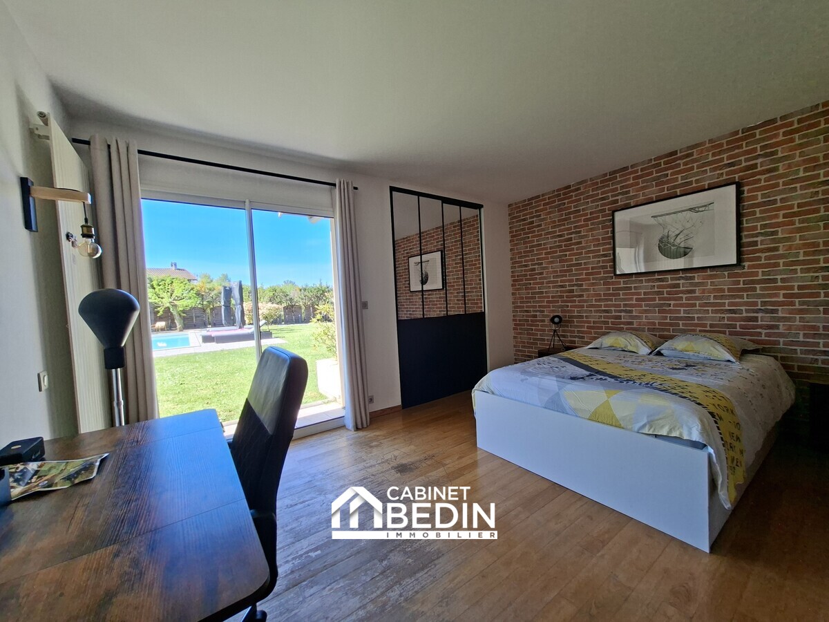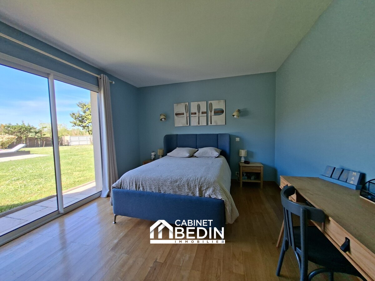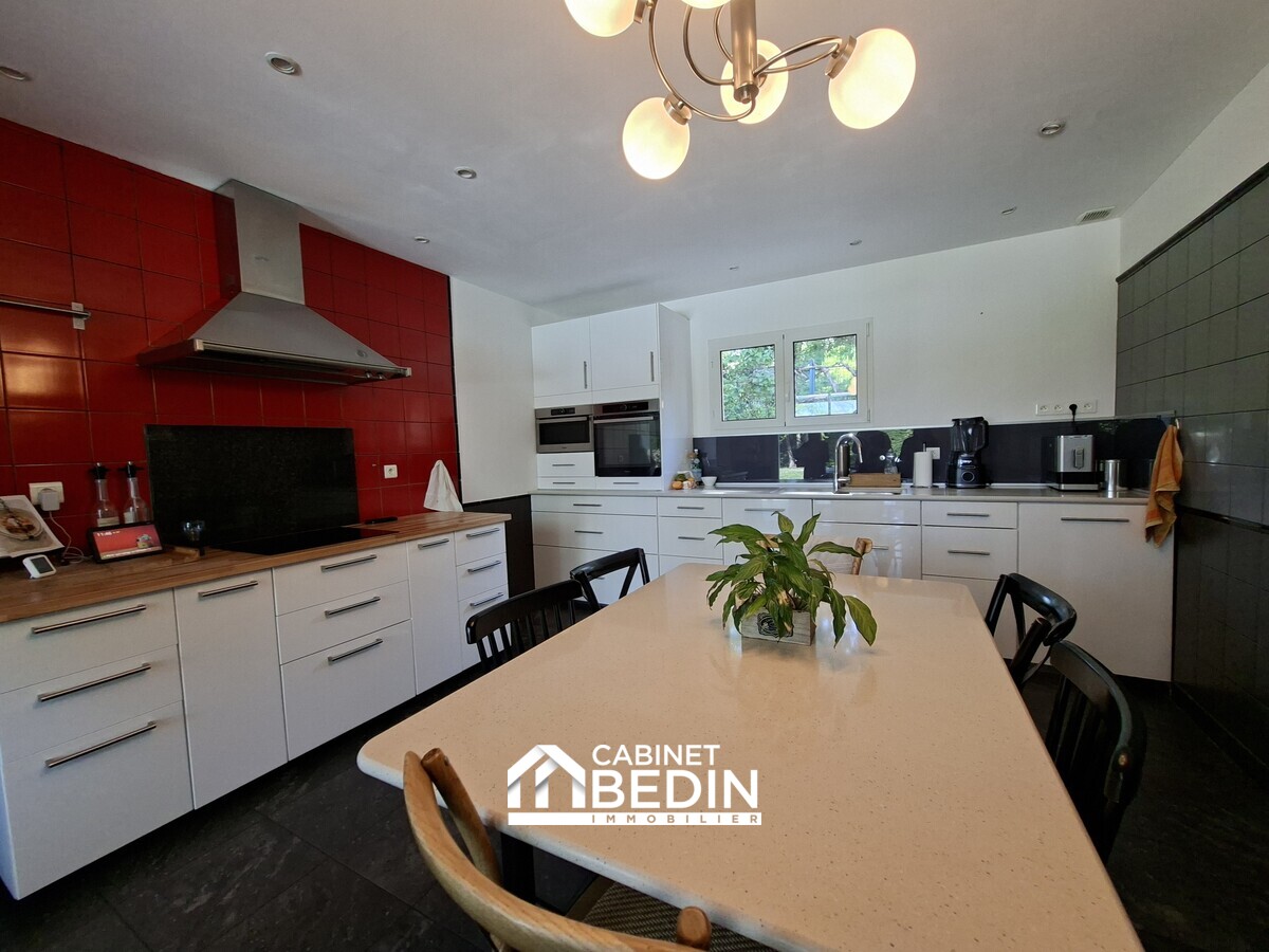 Située en plein centre de La Brède, dans un environnement résidentiel recherché, cette villa d’architecte de 260 m² offre de beaux volumes et des prestations de qualité