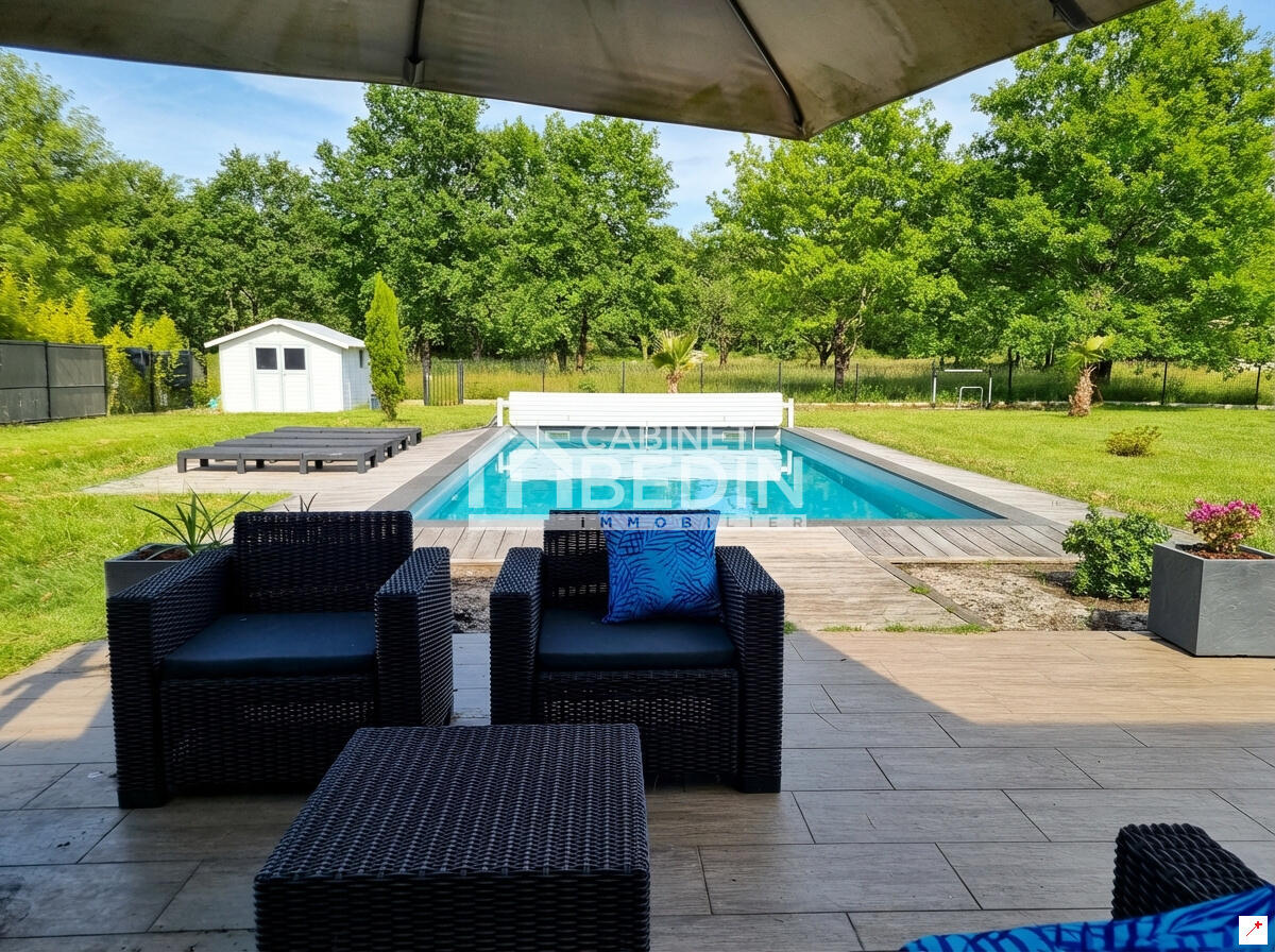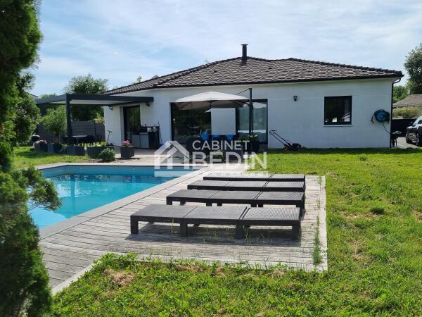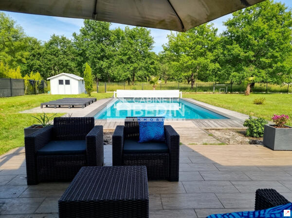 Cette annonce immobilière correspond à des personnes en recherche maison La Brede. Ce bien immobilier propose une surface de 141 m². Cette maison construite sur un terrain de 1508 m² dispose de 4 chambres. Dans le détail, cette Maison comprend les pièces ou éléments suivants: buanderie de 8.7 m² , abri jardin de 12.0 m² , debarras de 4.3 m² , chambre de 11.2 m² , chambre de 11.9 m² , chambre de 12.6 m² , suite parentale de 16.5 m² , cuisine sejour salon de 60.1 m² , couloir de 5.9 m² , piscine de m² , douche de 4.4 m² , salle de bain de 8.1 m² , terrasse de m² , toilettes de 2.7 m²