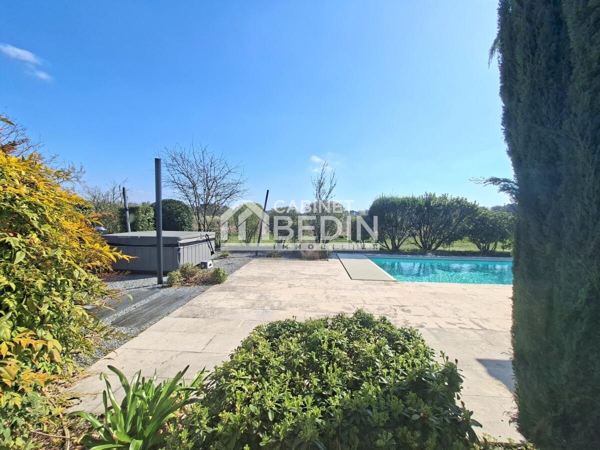 Elle est composée de 5 chambres dont une chambre parentale isolée dédiée aux amis ou à un adolescent. Les extérieurs sont très soignés, profitez d’une terrasse couverte, d’une piscine, d'un jacuzzi et d'un terrain de pétanque pour des moments de détente. Un garage, un carport et un pool house complètent cet ensemble. Maison familiale par excellence où il fait bon vivre.