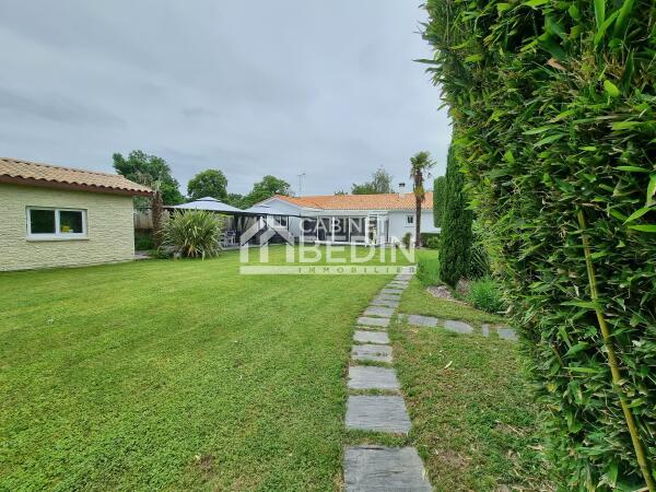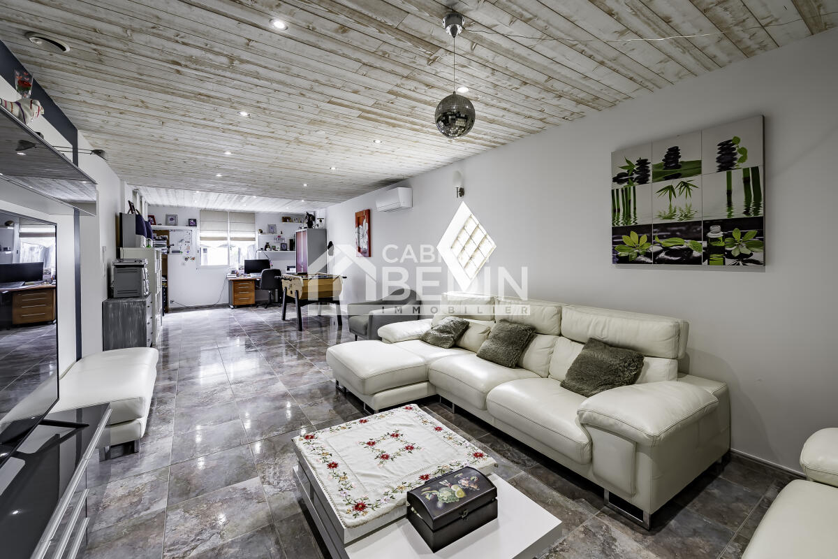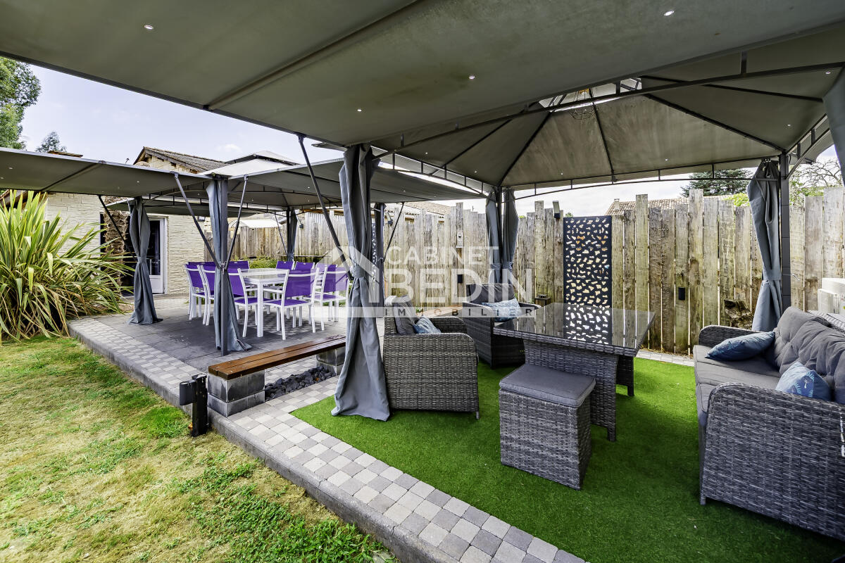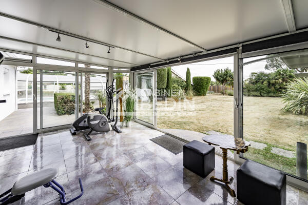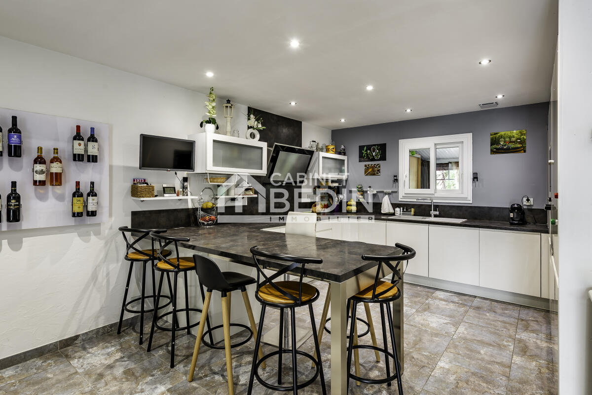 Située à la campagne, cette maison de plain-pied de 172 m² s'étend sur une parcelle de 5 000 m², complétée par un pré de plus de 1,6 hectare. Son architecture simple et élégante s'intègre harmonieusement dans un cadre verdoyant, offrant une vue dégagée sur la campagne environnante. Spacieuse et lumineuse, elle propose de vastes espaces : cuisine ouverte sur le séjour, idéale pour la vie familiale, grand salon/salle de jeux, trois chambres, salle de bain neuve. Elle dispose d'un insert et d'une pompe à chaleur pour un confort optimal en toute saison. Les volumes permettent des aménagements variés : chambres, bureau ou dressing. Garage, cave et parking extérieur goudronné complètent ce bien pratique au quotidien. À l'extérieur, jardin d'agrément, terrain de pétanque, terrasses aménagées avec espace barbecue fermé, piscine couverte et chauffée invitent à la détente. Le terrain bien exposé offre de nombreuses possibilités : potager, verger ou coin salon farniente. Une maison idéale pour une famille recherchant espace, confort et tranquillité, tout en restant proche de Coutras et Libourne.