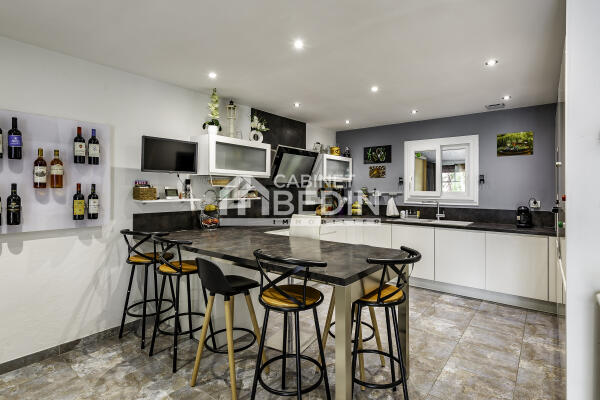En exclusivité au Cabinet Bedin, Cette annonce immobilière correspond à des personnes en recherche maison Lagorce. Ce bien immobilier propose une surface de 172 m². Cette maison construite sur un terrain de 20540 m² dispose de 3 chambres. Dans le détail, cette Maison comprend les pièces ou éléments suivants: buanderie de 9.0 m² , cave de 13.3 m² , chambre de 10.1 m² , chambre de 10.4 m² , chambre de 11.5 m² , dégagement de 3.6 m² , cuisine sejour salon de 39.5 m² , entree de 11.1 m² , garage de 25.0 m² , local technique de 12.4 m² , piscine de 32.0 m² , salle de bain de 4.2 m² , séjour de 39.2 m² , veranda de 25.2 m² , toilettes de 1.8 m²