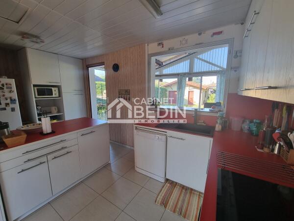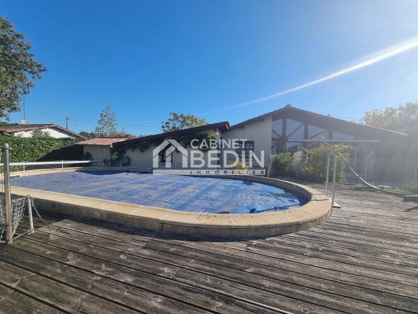 Cette annonce immobilière correspond à des personnes en recherche maison Lanton. Ce bien immobilier propose une surface de 114 m². Cette maison construite sur un terrain de 945 m² dispose de 4 chambres. Dans le détail, cette Maison comprend les pièces ou éléments suivants: chambre de 10.6 m² , chambre de 9.1 m² , chambre de 9.2 m² , chambre de 9.6 m² , cuisine aménagée de 15.3 m² , couloir de 2.7 m² , dependance de 25.8 m² , garage de 27.0 m² , piscine de 50.0 m² , douche de 3.8 m² , salle a manger sejour de 22.9 m² , veranda de 27.0 m² , toilettes de 2.5 m² , toilettes de 1.2 m²
