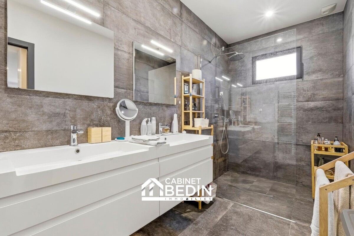 Dès l’entrée, vous serez séduit par des volumes généreux baignés de lumière naturelle, sublimés par des lignes épurées et des matériaux de qualité. La pièce de vie, spacieuse et ouverte, offre un espace convivial prolongé par de larges baies vitrées donnant sur un jardin paysager avec piscine.