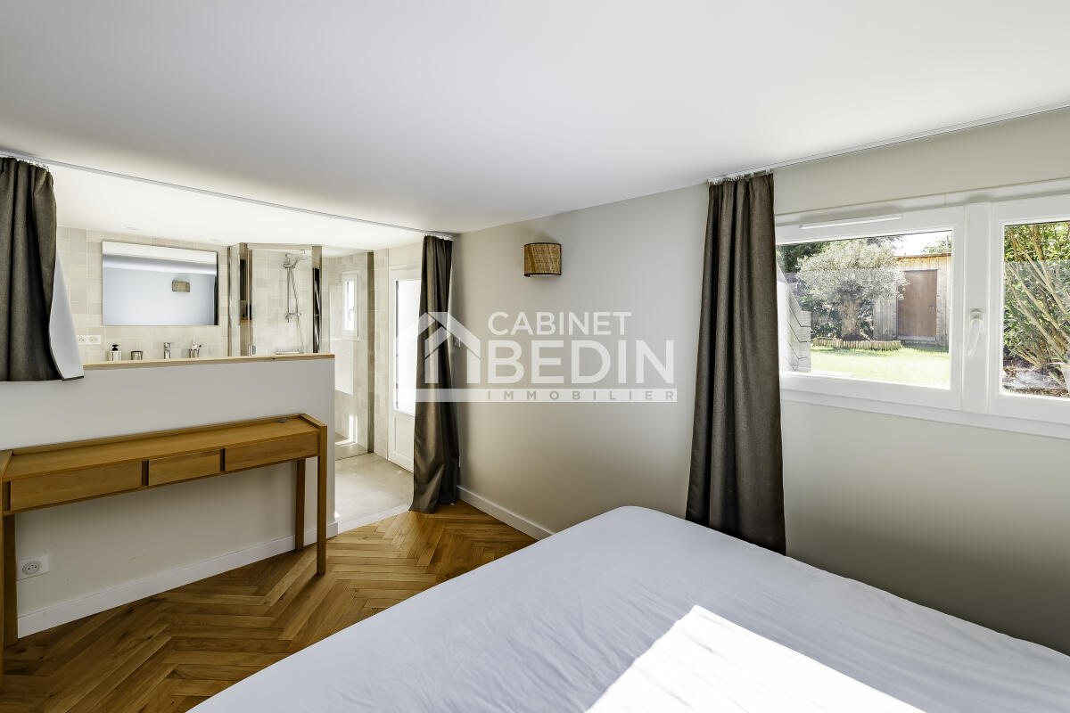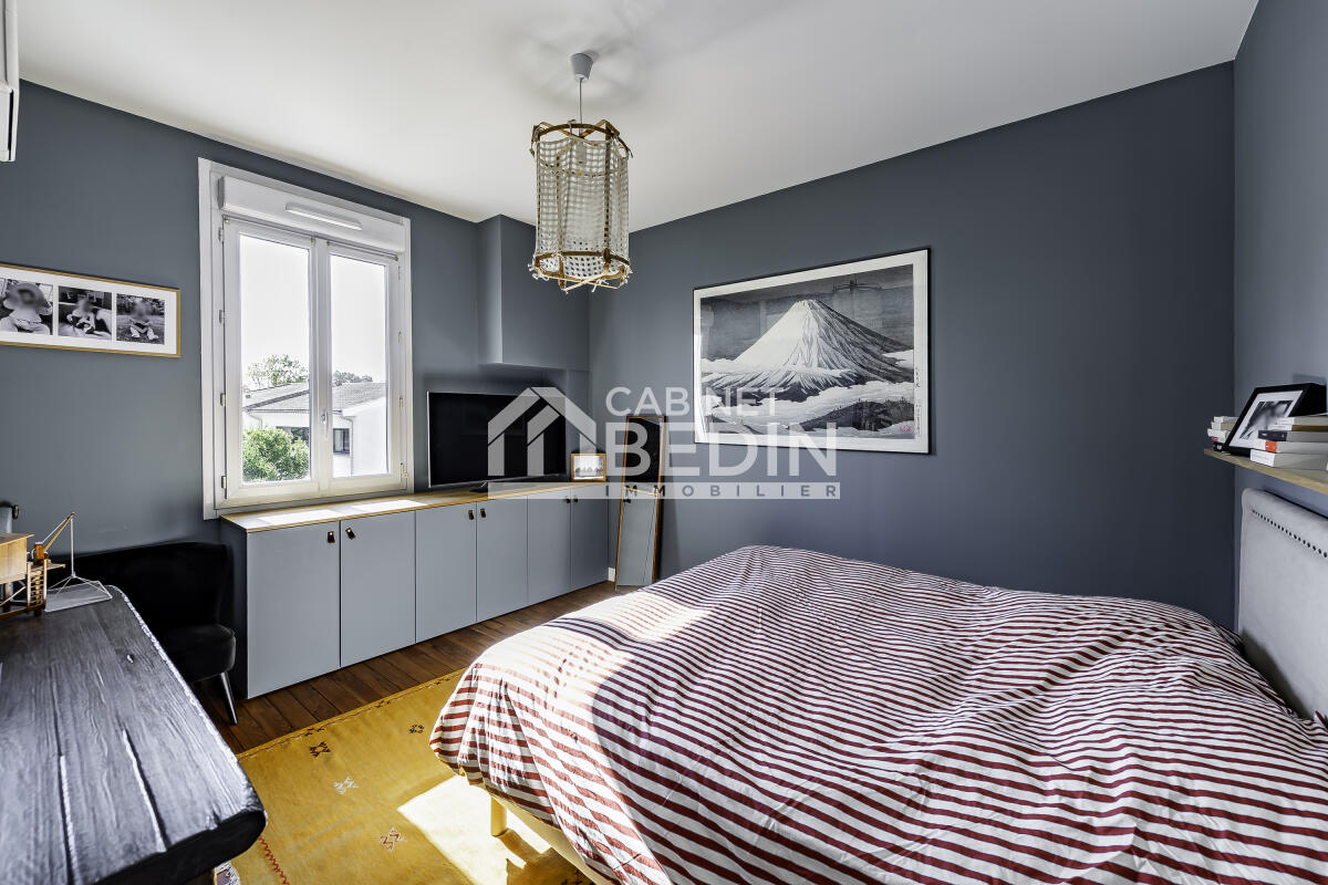 Élégante maison en pierre entièrement rénovée. Nichée dans l’une des adresses les plus prisées du Bouscat, cette superbe demeure en pierre séduit par son raffinement, sa lumière et son charme intemporel. Rénovée avec des matériaux de qualité et un soin du détail, elle offre un cadre de vie aussi élégant que convivial. Le rez-de-chaussée dévoile une pièce de réception aux volumes généreux avec sa cuisine ouverte et son îlot central, baignée de lumière grâce à de larges ouvertures sur la terrasse et le jardin paysager. À l’étage, trois belles chambres et une salle de bain et douche familiale avec WC complètent l’espace nuit, dans une atmosphère douce et harmonieuse.