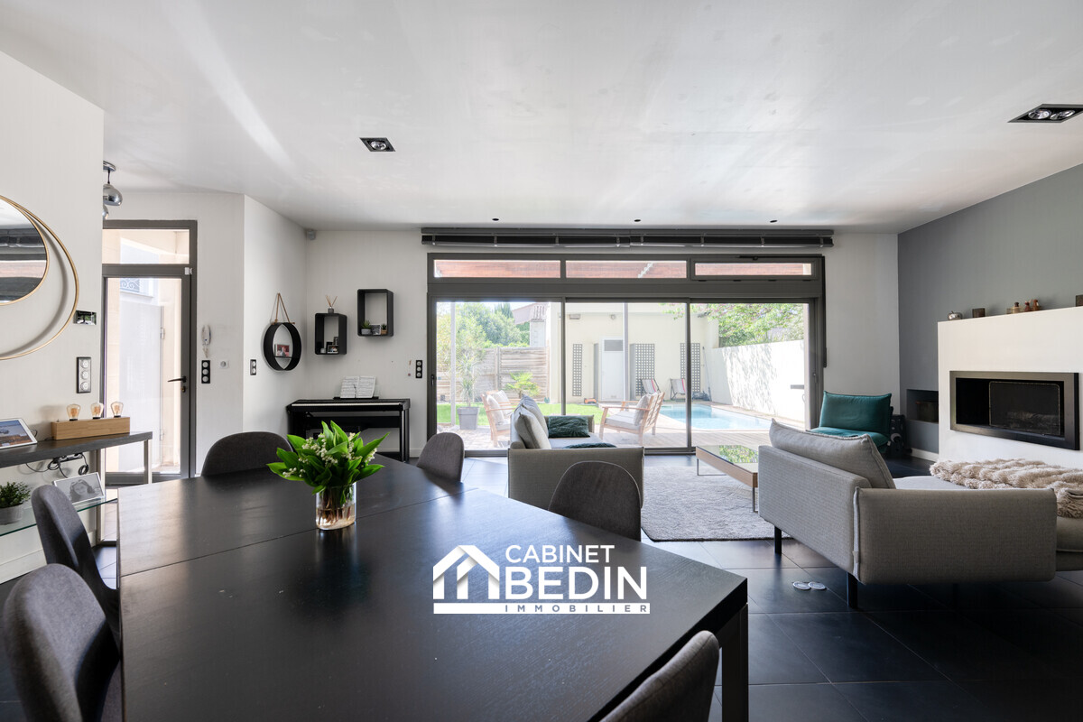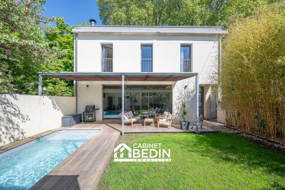 LE BOUSCAT CENTRE : dans un secteur prisé entre le Parc Bordelais et le Parc Marceau, cette belle et grande maison construite en 2007 vous offre tout le confort. Le séjour avec cuisine semi-ouverte d'environ 60 m² ouvre directement sur la terrasse, le jardin et la piscine exposée ouest. Cinq grandes chambres dont une suite parentale au rez-de-chaussée, un bureau/salle de jeux, deux salles d'eau, deux WC indépendants, une cave complètent ce bien. Pour le stationnement, cette maison vous dispose d'un grand garage ainsi que d'une place de stationnement sur la parcelle. La maison est en parfaite état et offre des prestations haut de gamme. A saisir rapidement.