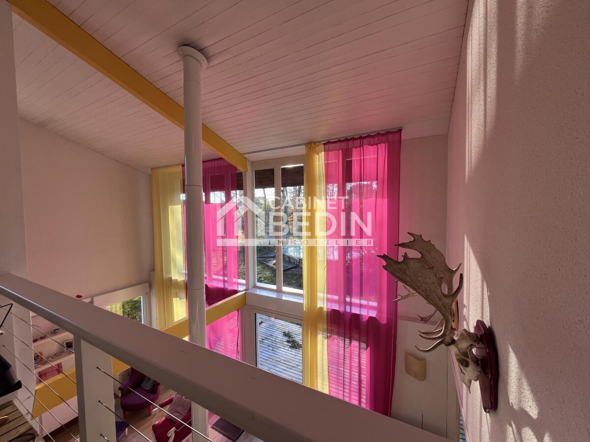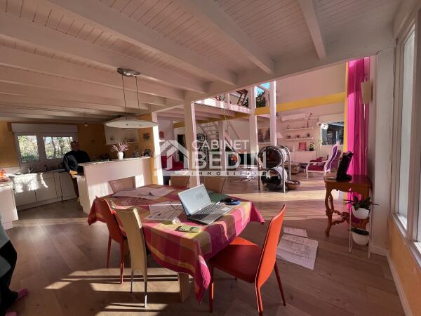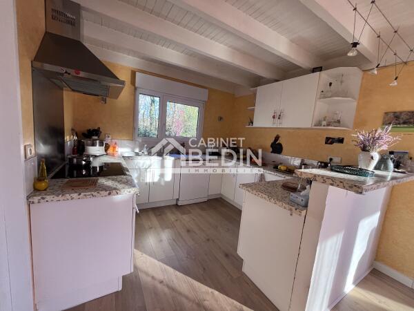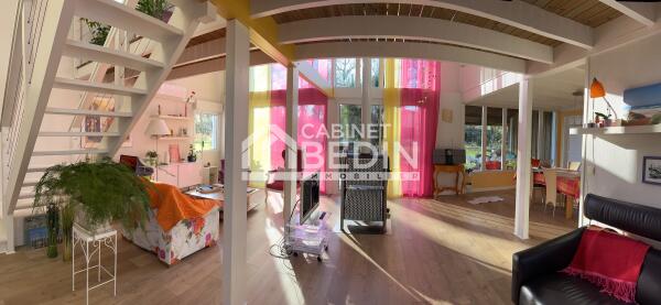 Sur une magnifique parcelle de 4000m2, cette maison d'architecte de construction bois possède des volumes et une luminosité exceptionnels. Amoureux du calme et des grands espaces, cette maison est idéale. Au rez de chaussé, dès l'entrée vous découvrirez un séjour-cuisine de presque 70m2, avec plafond cathédrale donnant sur le jardin. cellier, buanderie et wc séparé mais également 4chambres dont une suite avec salle d'eau/wc et dressing vous attendent avec de nombreux rangements. A l'étage, espace bureau + 2 chambres + grenier isolé vous permettent d'accueillir une famille nombreuse ou des amis de passage. Chauffage gaz + poêle a bois. Très bonne isolation. double Car-port. Terrasse couverte sur grand Jardin exposé ouest avec Piscine.