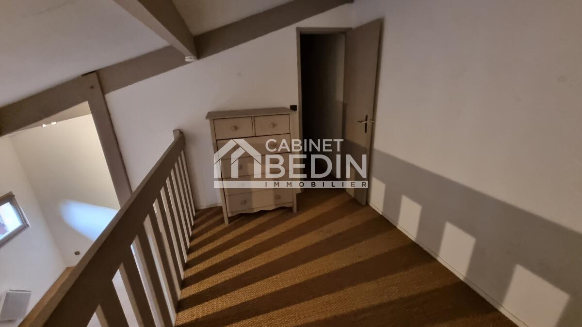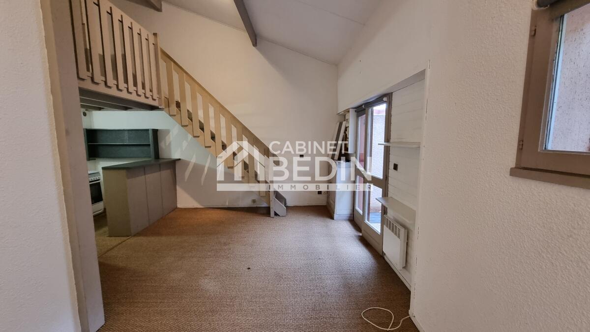 A 100 m de la plage, maison en duplex louéée meublée, composée d'un séjour avec cusine, d'une chabre et d'une salle d'eau au rez-de-chaussée et à l'étage d'une mezzanine et d'une chambre. Deux places de parking, un cellier et un extérieur complètent le tout. Libre de suite.