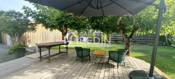 Villa entièrement rénovée de 160 m² à vendre à Claouey, Cap Ferret, avec 5 chambres, salon lumineux avec poêle à bois, garage et jardin paysagé, proche bassin et commodités.Garage 30m2