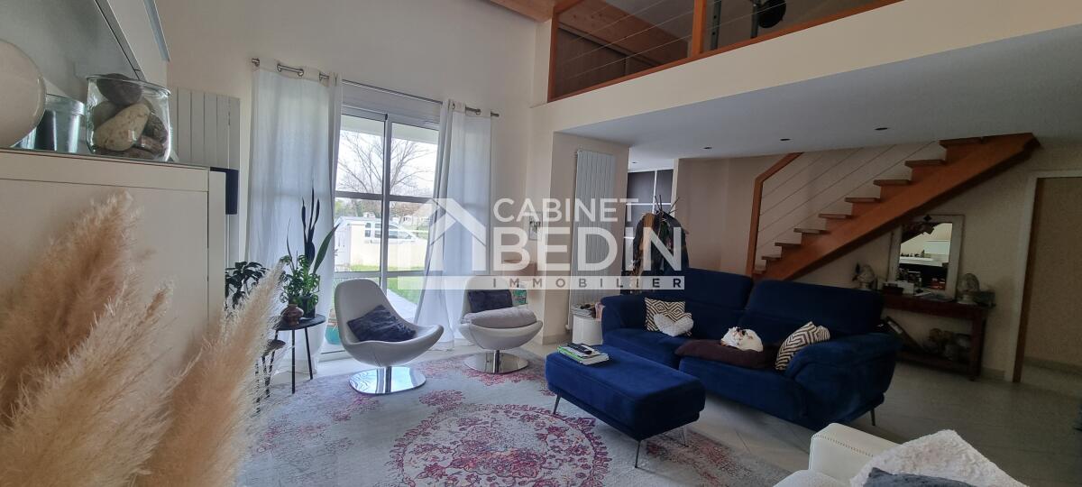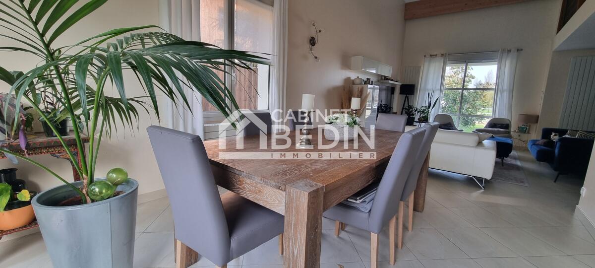 Au coeur du charmant bourg de Léognan nous vous proposons cette chaleureuse maison contemporaine à la décoration soignée et aux volumes bien distribués. L'espace de vie et la cuisine offrent une généreuse luminosité grâce à ses 3 orientations et à son beau plafond cathédrale, les quatre chambres et le bureau offriront à une famille tout le confort nécessaire pour profiter de ce beau lieu. Le charme se poursuit avec le splendide jardin et sa piscine lovée dans une belle terrasse en bois. Cette maison ne vous laissera pas indifférent, elle est rare et chic dans une rue intime et au grand calme.