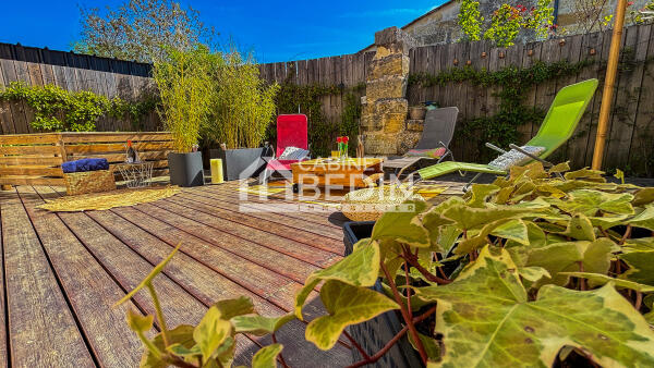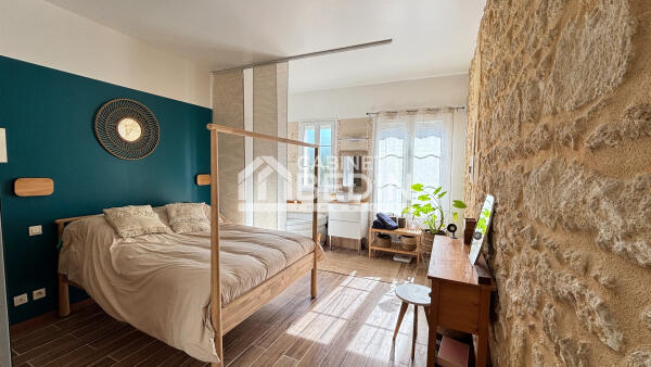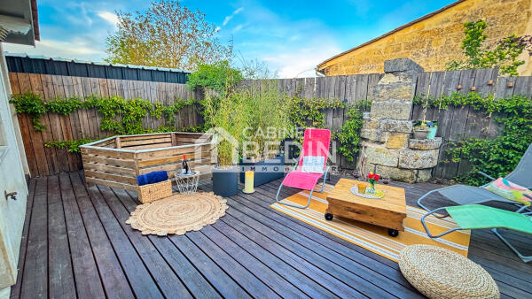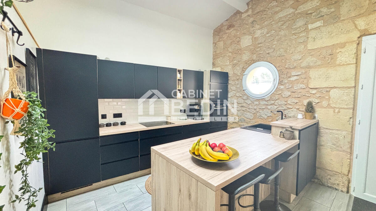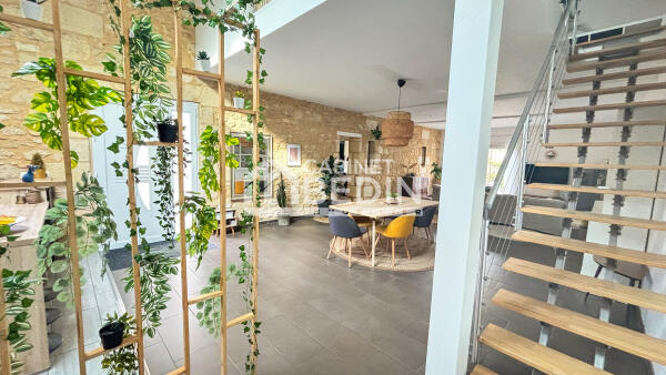 Cet ancien chai totalement rénové saura vous séduire avec son vaste séjour-cuisine très lumineux. Une chambre en suite et un bureau au rez-de-chaussez sont des atouts essentiels. A l'étage deux chambres une salle d'eau avec wc et une mezzanine enchanteront vos adolescents. Magnifique terrasse de 100 m² où passer de merveilleuses soirées d'été.Parking pour 2 voitures à l'intérieur de la propriété