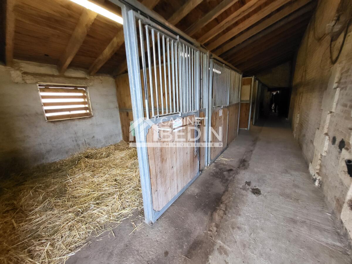 Superbe propriété en pierre de plus de 400 m² à proximité de St André de Cubzac, composée de 12 pièces dont 7 chambres, située dans un environnement calme et préservé. Cette propriété équestre dispose de boxes à chevaux, d’une grange et de nombreuses dépendances. L’ensemble s’étend sur 8 hectares clôturés, parfaitement adaptés à l’accueil des chevaux. Un bien rare alliant charme, volumes et nature, idéal pour un projet familial ou équestre.