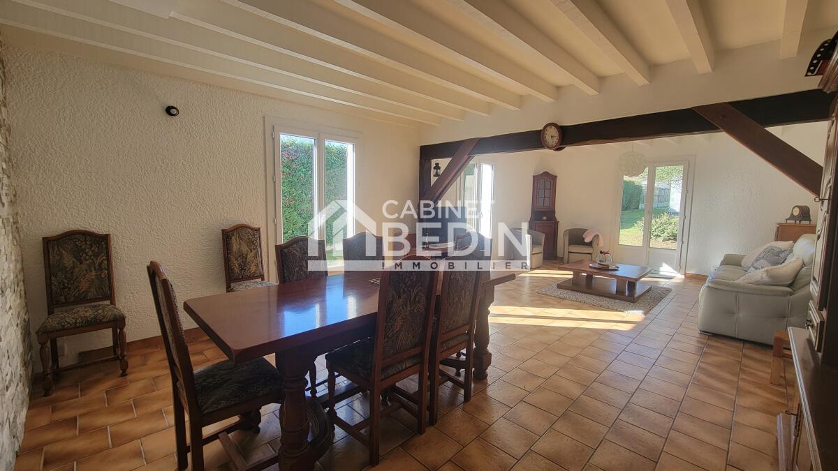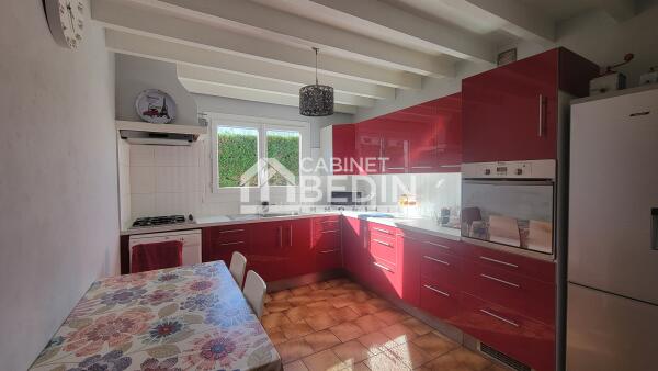 La maison développe une belle surface de vie et propose trois chambres, idéales pour une famille ou pour recevoir. Les espaces sont lumineux.