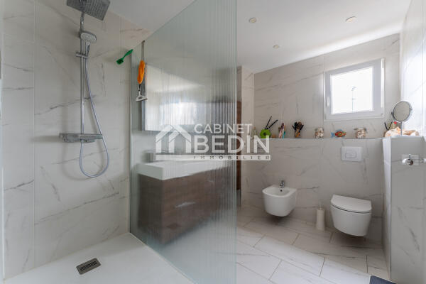 En exclusivité au Cabinet Bedin, Cette annonce immobilière correspond à des personnes en recherche maison Merignac. Ce bien immobilier propose une surface de 125 m². , d'une surface carrez de 126,8 m²Cette maison construite sur un terrain de 350 m² dispose de 4 chambres. Dans le détail, cette Maison comprend les pièces ou éléments suivants: buanderie de 11.2 m² , coin travail de 4.0 m² , chambre de 9.7 m² , chambre de 11.6 m² , chambre de 10.1 m² , chambre de 13.4 m² , cuisine de 9.5 m² , entree de 13.9 m² , garage de 7.7 m² , palier de 5.0 m² , salle d'eau toilettes de 6.5 m² , salle a manger sejour de 30.3 m² , terrasse couverte de 25.0 m² , toilettes de m²