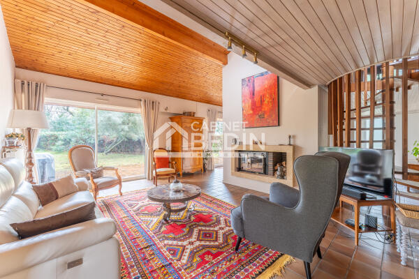 Au cœur du poumon vert de Mérignac, au calme et sans vis-à-vis, cette maison d’architecte lumineuse séduit par ses volumes généreux et son cadre de vie privilégié. Implantée sur une grande parcelle verdoyante, elle se développe principalement de plain-pied, offrant une organisation pratique et confortable pour la vie quotidienne.