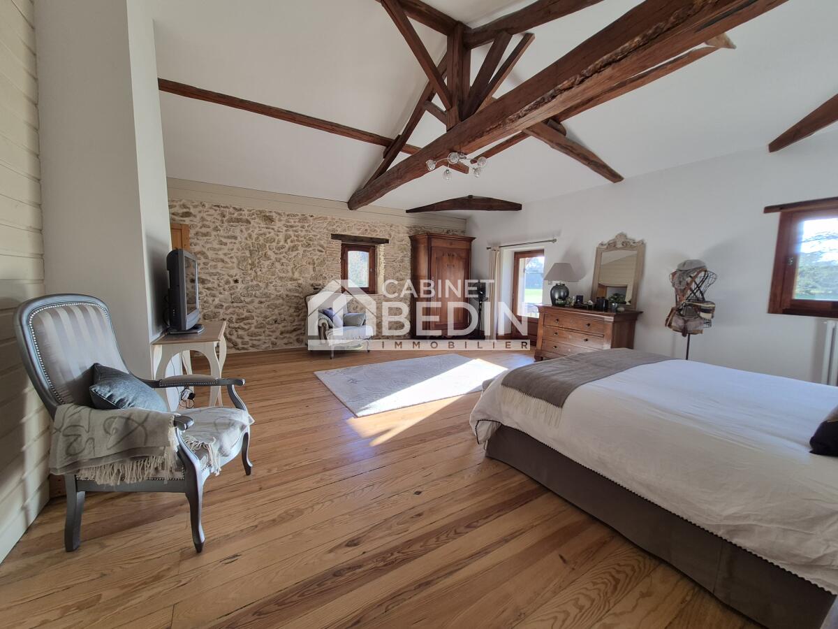 Maison de prestige dans un cadre bucolique, sur parc arboré de plus de 2 hectares. Séjour et salon avec cheminée traversante, 5 chambres dont suite parentale, dépendances, piscine, chaudière à granulés. Bien rare.