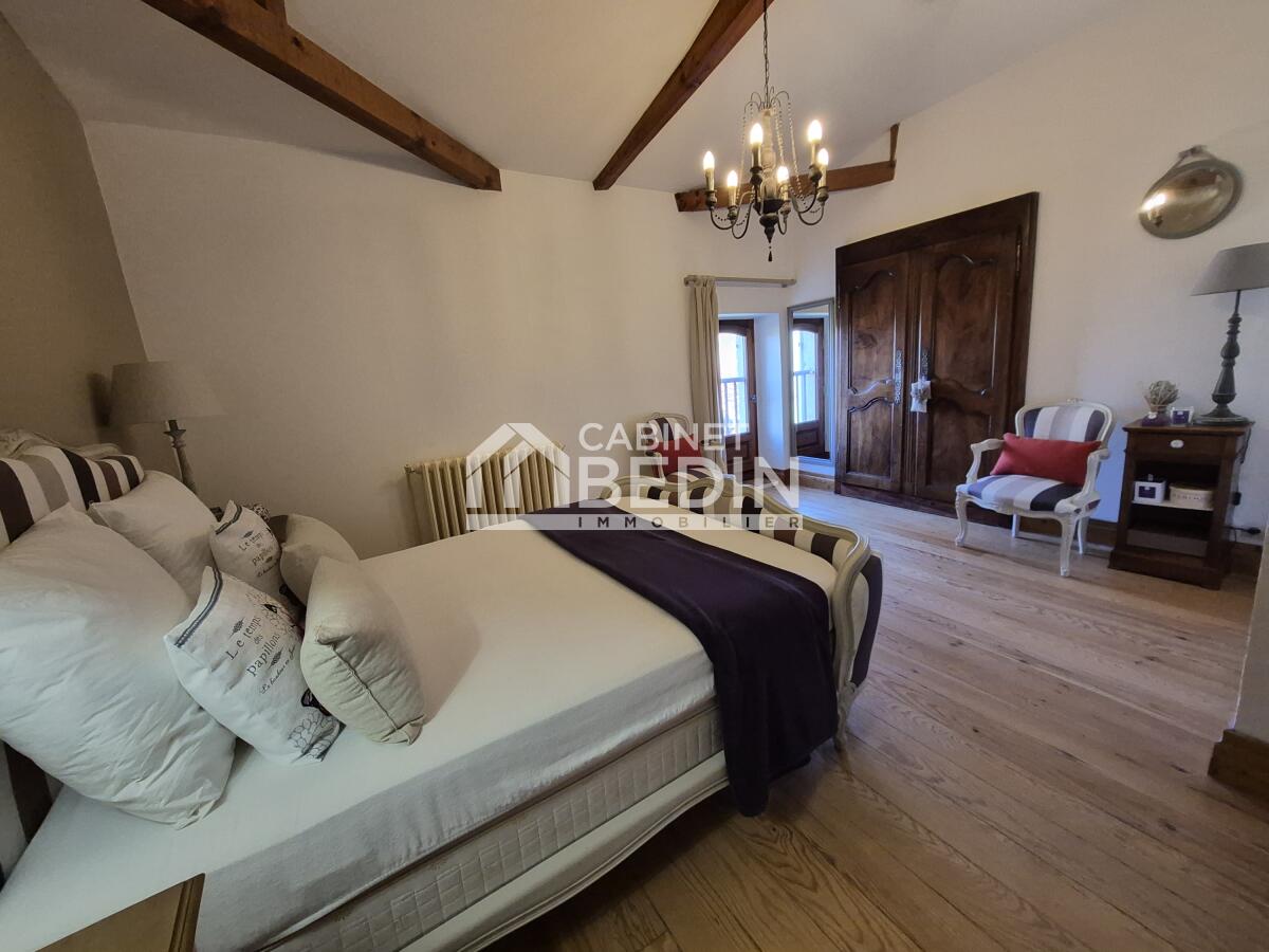 La demeure séduit par ses volumes généreux, ses prestations de qualité. Les espaces de réception, sublimés par une cheminée à foyer ouvert traversant, invitent à la convivialité et aux instants privilégiés. La maison propose cinq chambres dont une somptueuse suite parentale et une en rez de chaussé, pensées pour le confort et l’intimité.