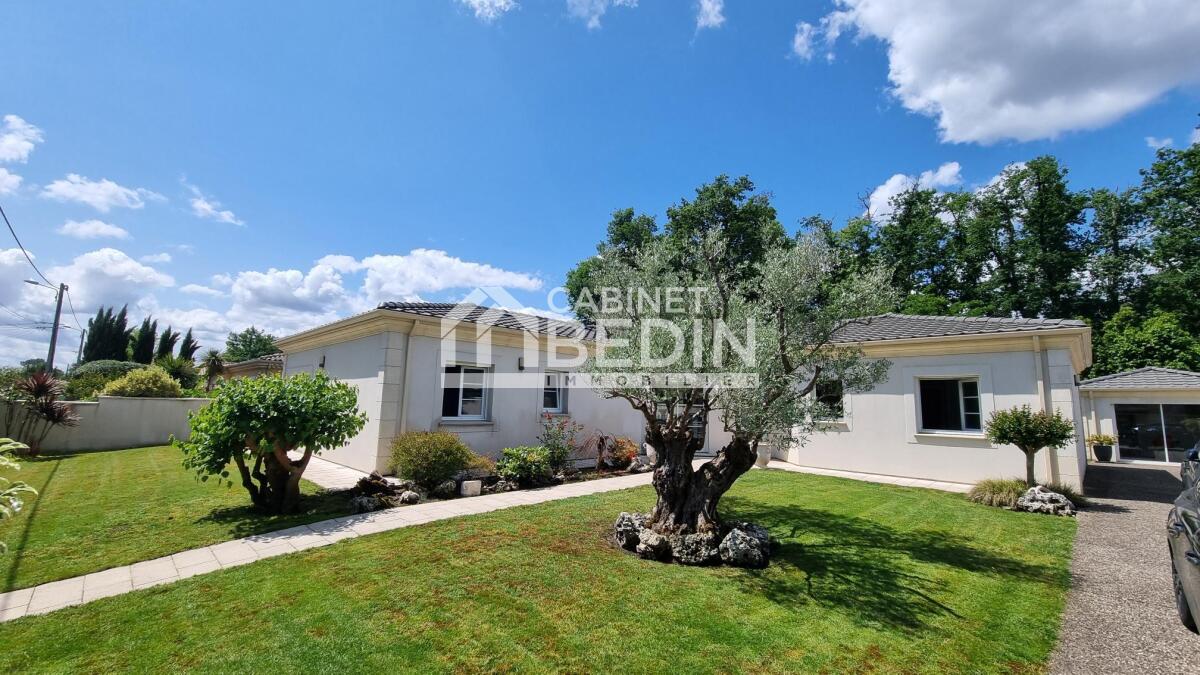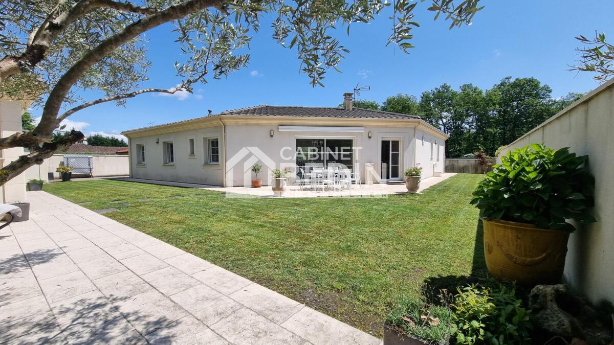 Très belle contemporaine Parempuyre centre, au calme. Proche Centre Commercial du Pian - Volumes exceptionnels de plain-pied : 175m2 avec 5 chambres, 2 pièces d'eau et 2wc. Un séjour-cuisine de 60m2. Belles prestations. Entretien irréprochable. A l'extérieur nombreux stationnements possibles, une cuisine d'été avec terrasse couverte, un petit cellier et une pièce isolé de 20m2, sur 900m2 de terrain.